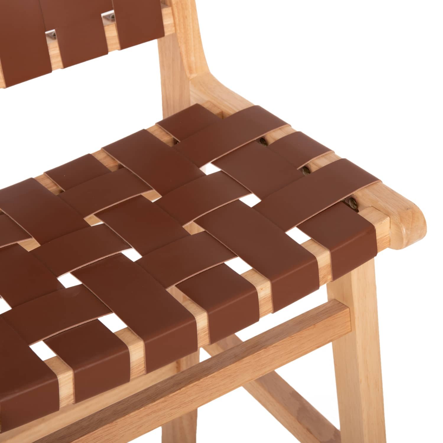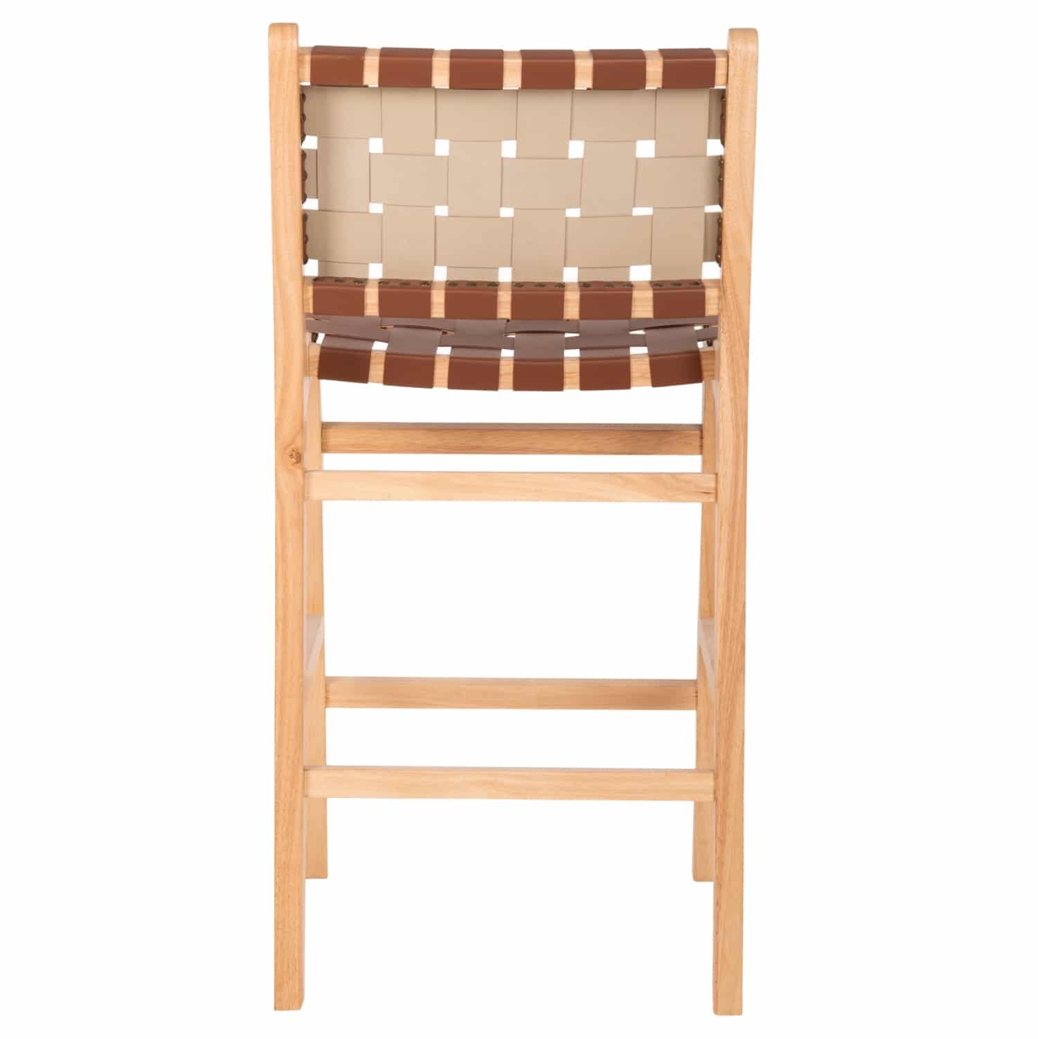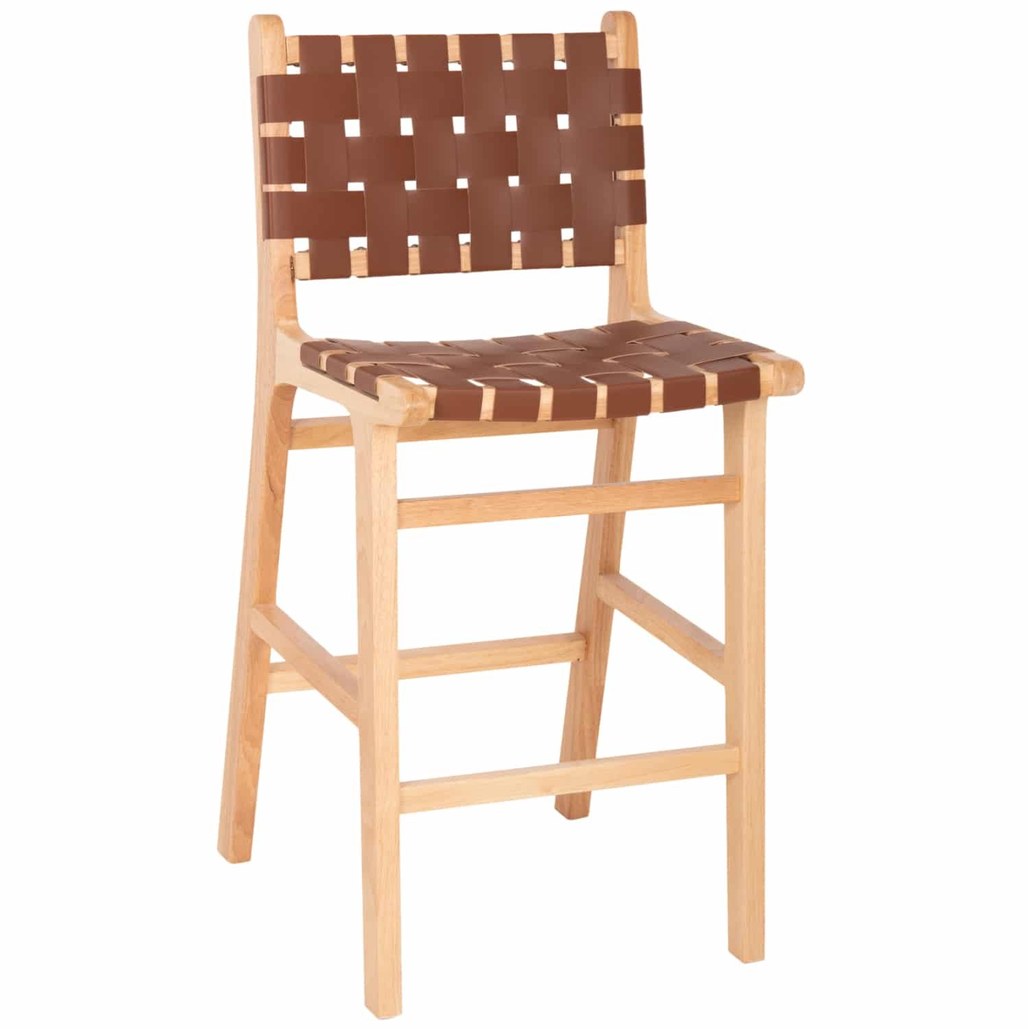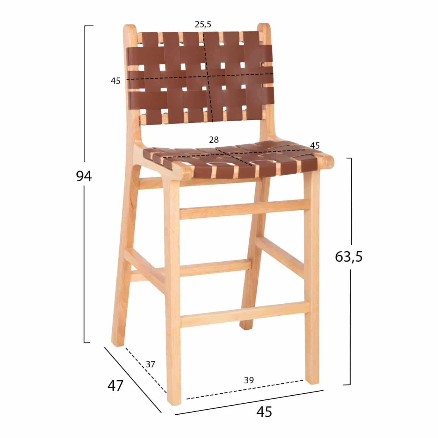Το σκαμπό FELIPE χωρίς μπράτσα είναι απαράμιλλης ομορφιάς. Ο πανέμορφος σκελετός του είναι από ποιοτικό εξωτικό ξύλο, ενώ τόσο η μεσαίου ύψους πλάτη όσο και το άνετο κάθισμα αποτελούνται από ΚΑΦΕ συνθετικό δέρμα PU με τετραγωνισμένη πλέξη. Οι σχεδιαστικές γραμμές του σκαμπό είναι κομψές και με γνώμονα την άνεση του χρήστη, ενώ το ξύλο έχει το ΦΥΣΙΚΟ του χρώμα που μπορεί άνετα να συνδυαστεί με διάφορα διακοσμητικά μοτίβα. Το σκαμπό θα αποτελέσει το κέντρο ενδιαφέροντος οπουδήποτε και αν τοποθετηθεί.