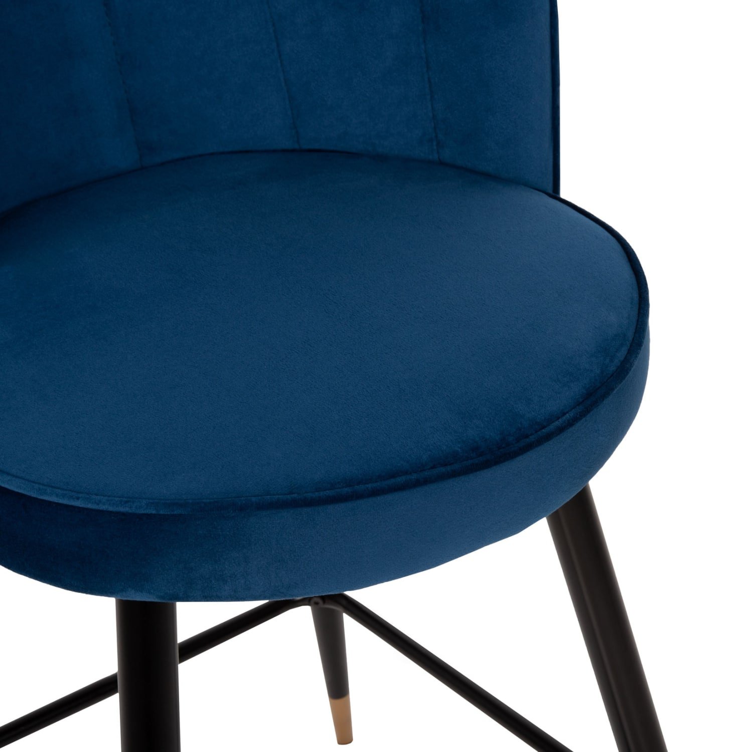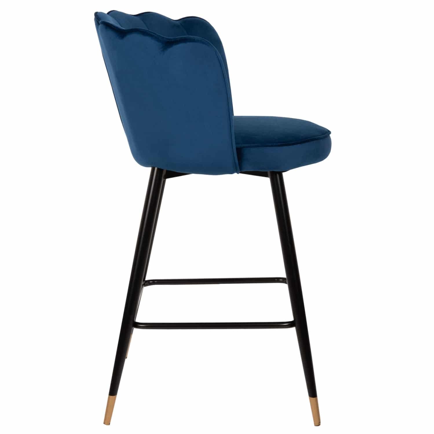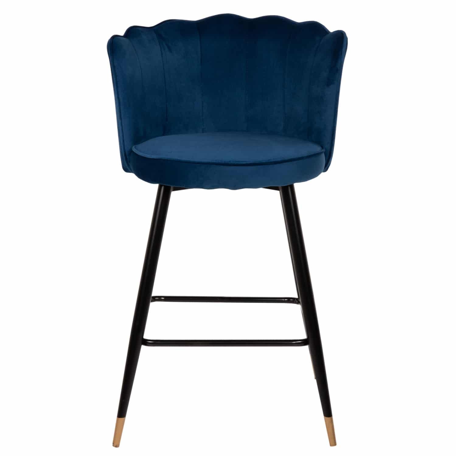 Επαγγελματικό σκαμπό bar «VESNA» σε ΜΠΛΕ χρώμα με μαύρο μεταλλικό σκελετό. Τα μεταλλικά πόδια ενώνονται μεταξύ τους περίπου στη μέση τους με μια μαύρη μεταλλική ράγα. Το «VESNA» είναι λιτό, ποιοτικό και κομψό στην όψη, και σίγουρα τραβάει τα βλέμματα με το βελούδινο ύφασμα με το οποίο είναι επενδυμένο. Είναι μεσαίου ύψους με πλάτη, η οποία έχει την όψη ανοιχτού όστρακου δίνοντας μια ιδιαίτερη αισθητική στον χώρο.