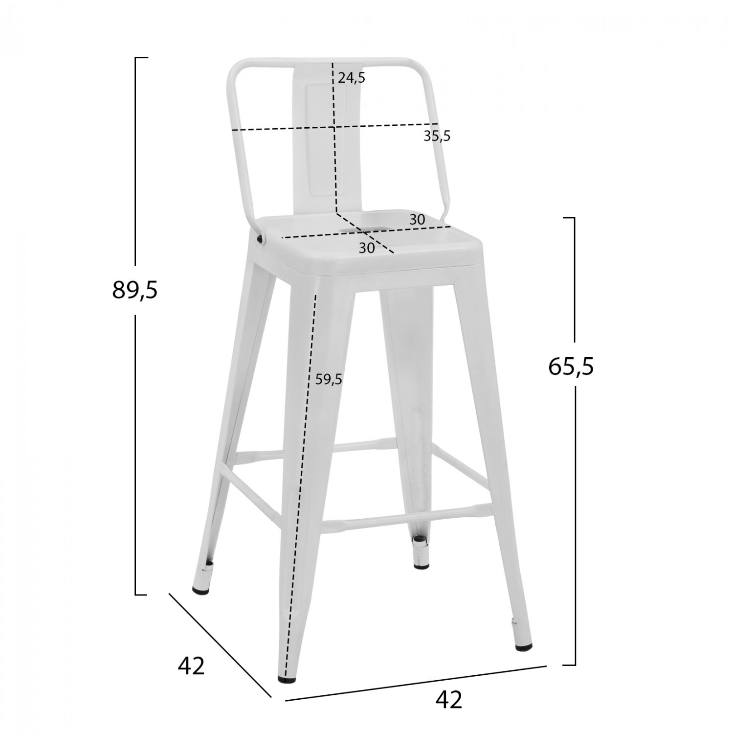 Σκαμπό μεσαίου ύψους MELITA μεταλλικό με πλάτη, σε λευκή ματ απόχρωση.