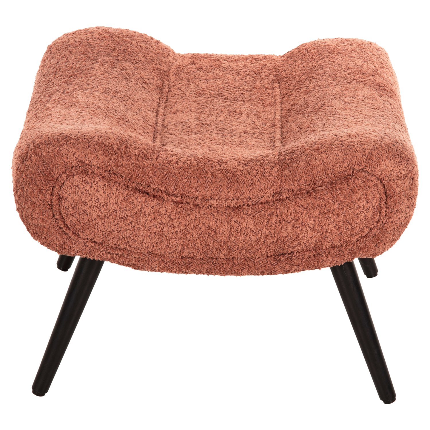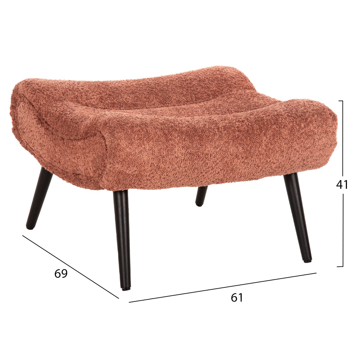 Σκαμπό υποπόδιο KEMBA επενδυμένο με ΡΟΖ μπουκλέ ζεστό ύφασμα και μαύρα ξύλινα πόδια.