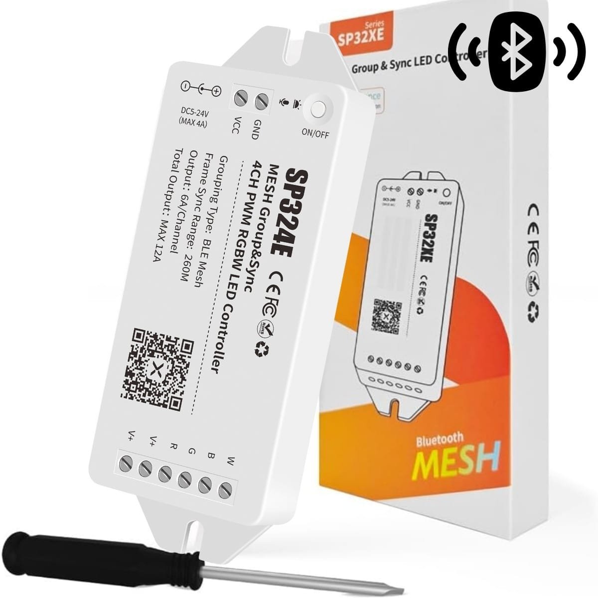 Ο SP324E είναι ένας ισχυρός controller για RGBW LED ταινίες (4 καναλιών), σχεδιασμένος για απαιτητικές εγκαταστάσεις που χρειάζονται ακρίβεια, συγχρονισμό και πλήρη έλεγχο μέσω εφαρμογής. Με τεχνολογία BLE Mesh επιτρέπει τη σύνδεση και τον συγχρονισμό πολλών συσκευών χωρίς κεντρικό hub, προσφέροντας σταθερή και αξιόπιστη λειτουργία.