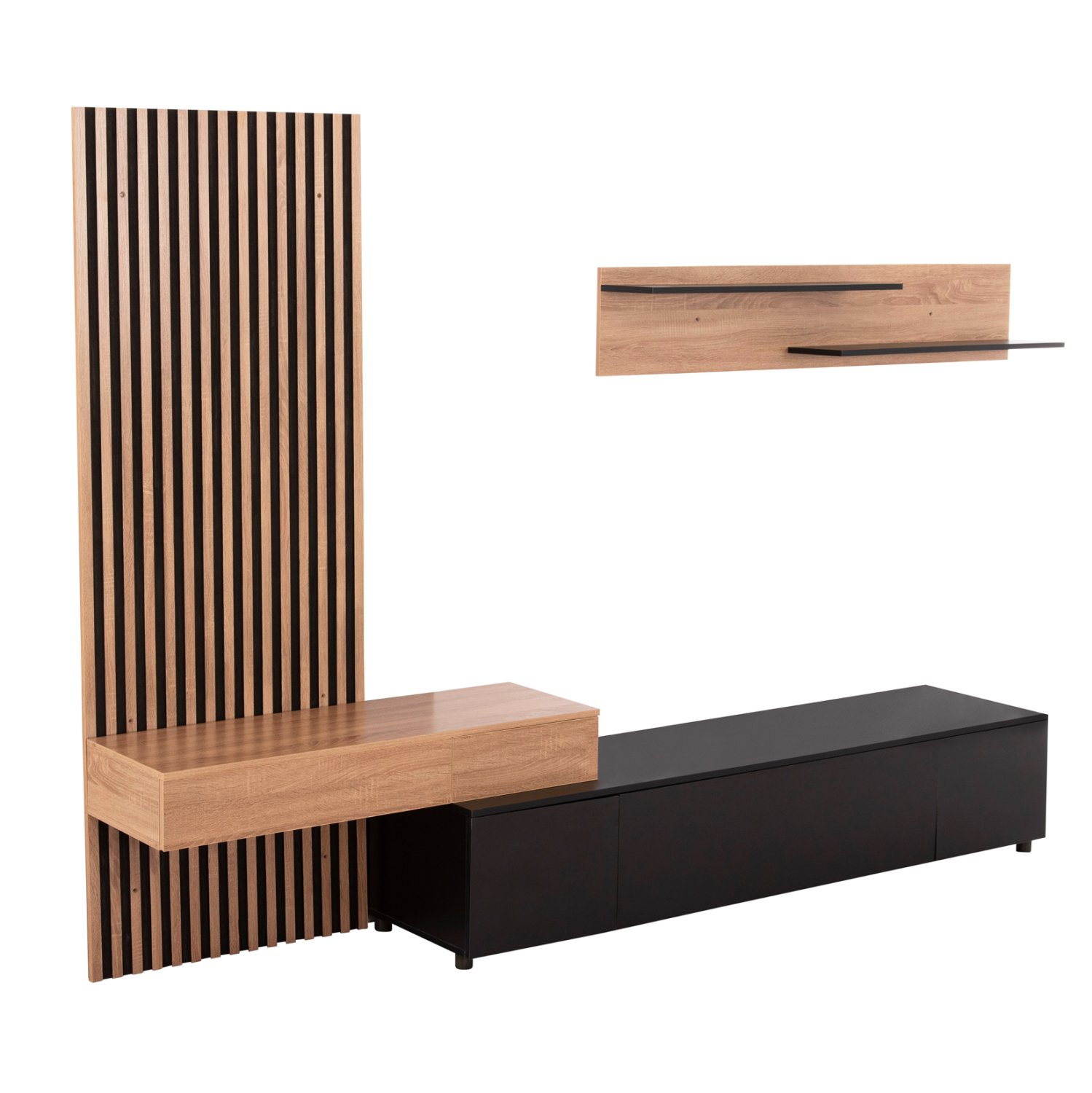Η σύνθεση επίπλου για την τηλεόραση DORT είναι μια μοντέρνα πρόταση σε ΜΑΥΡΟ και ΣΟΝΑΜΑ χρώμα, που θα ομορφύνει το σαλόνι σας! Αποτελείται από μια διακοσμητική «πλάτη», έναν επιτοίχιο συνδυασμό με 2 ραφάκια στο επάνω μέρος και το κυρίως έπιπλο δαπέδου. Το design είναι σε μοντέρνα γραμμή και είναι σίγουρο ότι οι αποθηκευτικοί χώροι θα εντυπωσιάσουν και τους πιο δύσκολους, τόσο στην όψη όσο και με την πρακτικότητά τους.