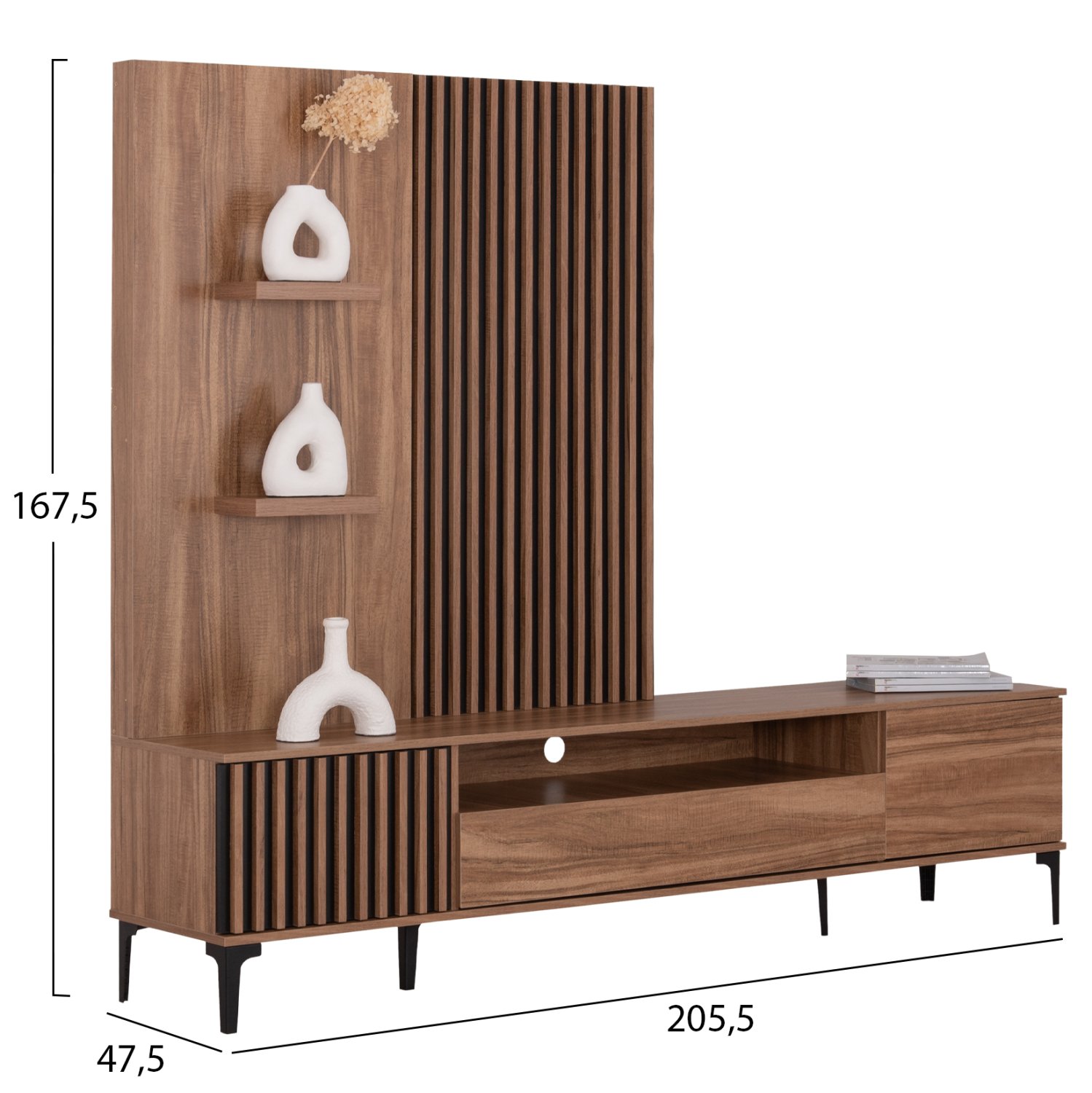 ΣΥΝΘΕΣΗ ΤΗΛΕΟΡΑΣΗΣ ΣΕΙΡΑ HARRY HM18010.01 ΜΕΛΑΜΙΝΗ ΦΥΣΙΚΟ-ΜΑΥΡΟ 205,5x40x167,5Υεκ
