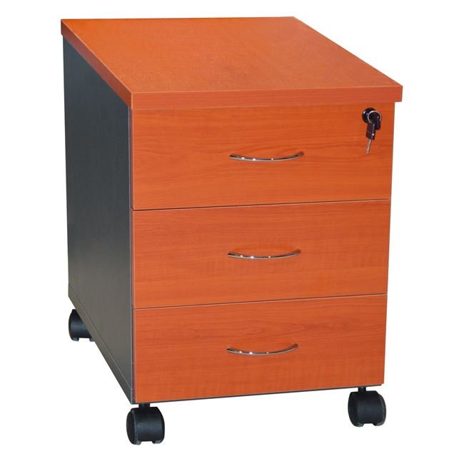 Τροχήλατη συρταριέρα γραφείου για επαγγελματική χρήση σε χρώμα κερασί και το υπόλοιπο σε χρώμα σκούρο γκρί, με κλειδαριά, μοντέρνα, σχεδιασμένη για να αποθηκεύεις έντυπα και τα καθημερινά μικροαντικείμενα του γραφείου σου. Κατασκευασμένη από ανθεκτική μελαμίνη.