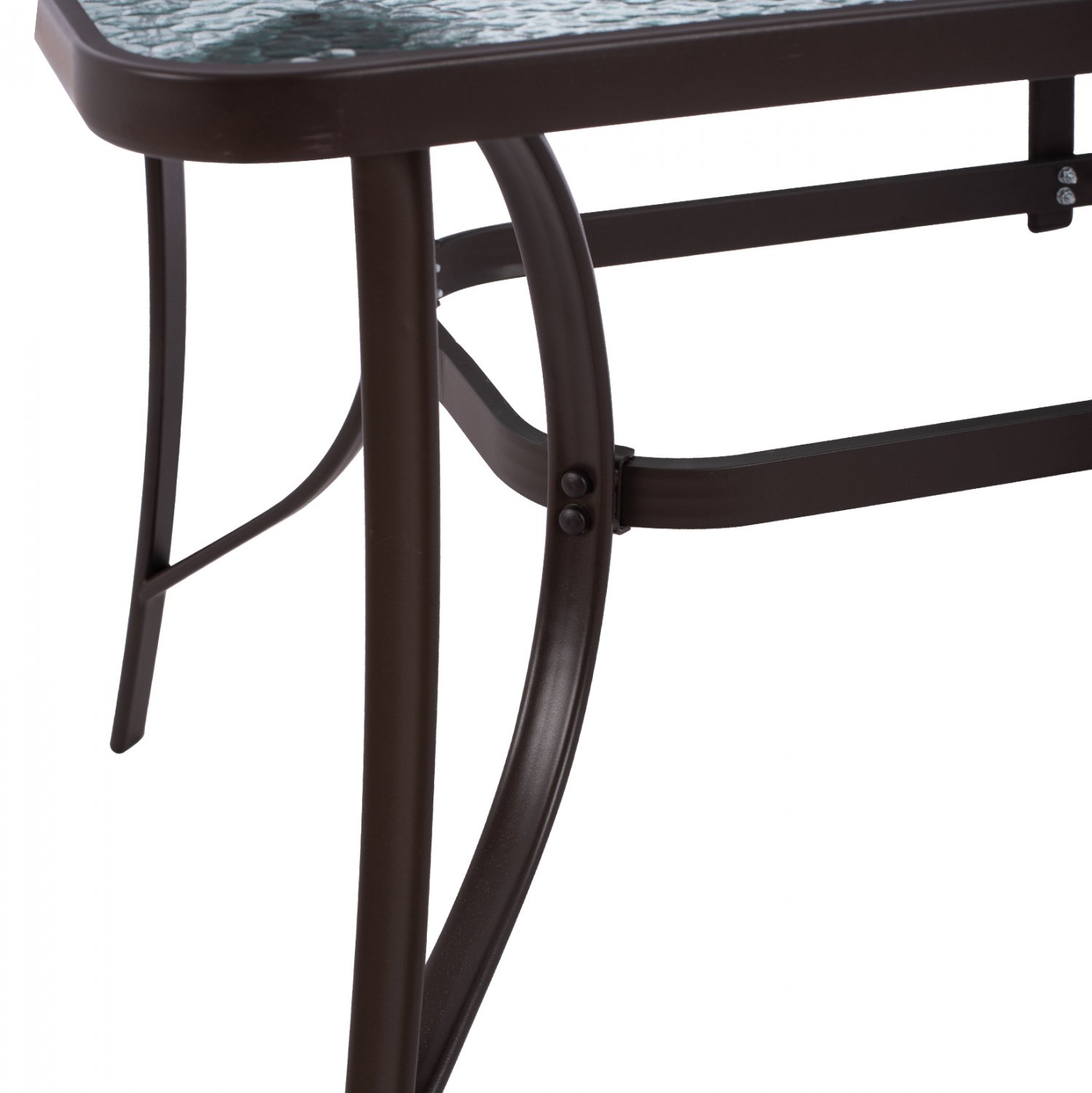 Τραπέζι μεταλλικό εξωτερικού χώρου σε καφέ απόχρωση με ενσωματωμένο τζάμι ασφαλείας (secure).