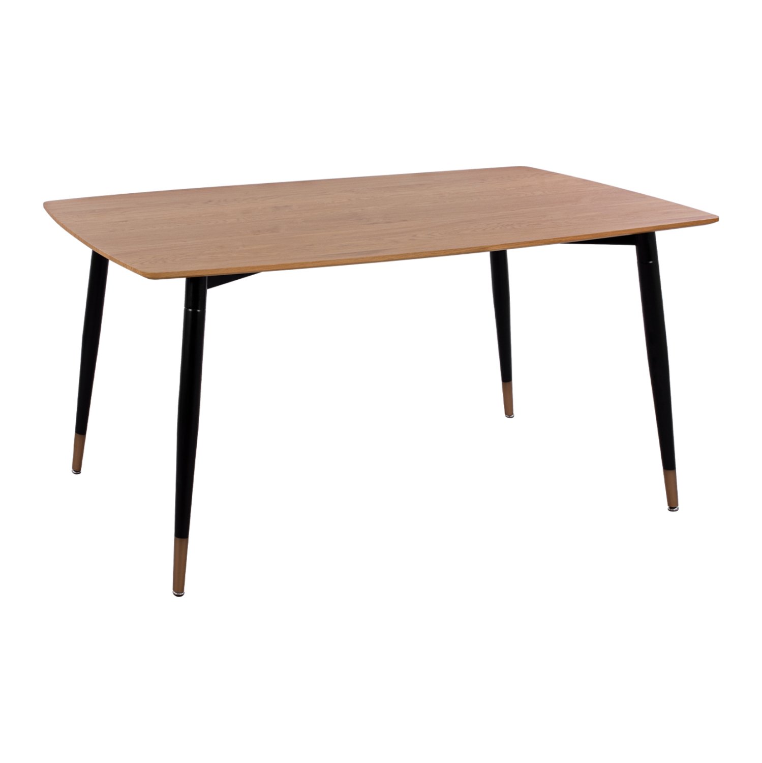 Ελκυστικό και μοντέρνο τραπέζι με μεταλλικά πόδια μαύρο ματ απόχρωση και χρυσές λεπτομέρειες στις άκρες και φυσική επιφάνεια από ξύλο.