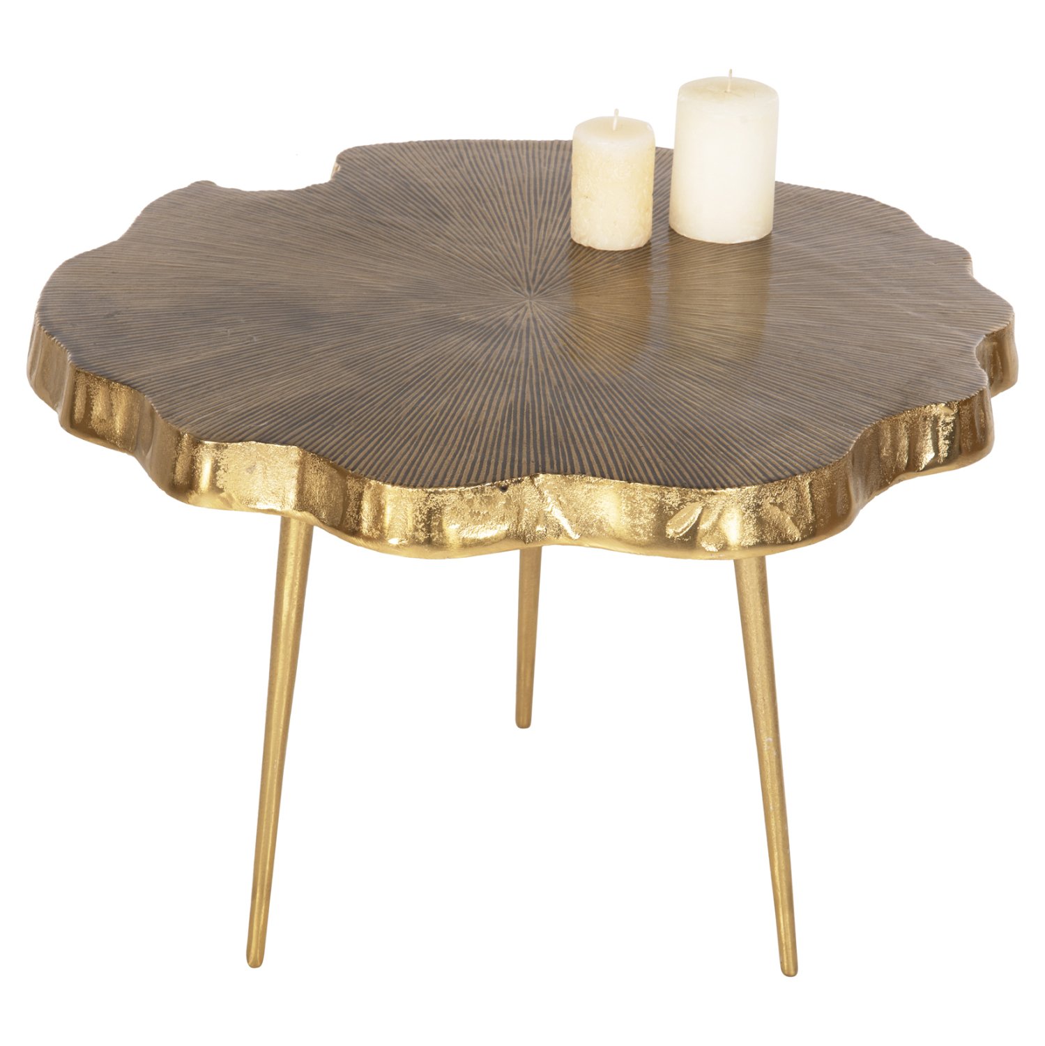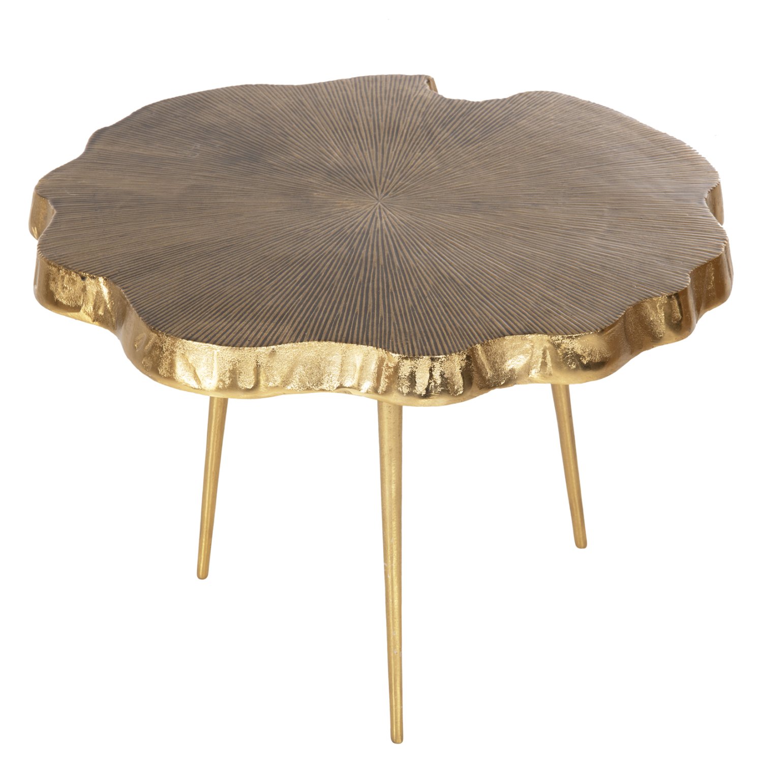 Το ANGUL είναι ένα τραπέζι σαλονιού με 3 πόδια, κατασκευασμένο εξολοκλήρου από μέταλλο σε ΧΡΥΣΟ και ΜΑΥΡΟ χρώμα. Η ιδιαιτερότητα αυτού του τραπεζιού είναι ότι προσομοιάζει μια «φέτα» από κορμό δέντρου γι’ αυτό και το σχήμα της επιφάνειάς του είναι ακανόνιστο. Αυτή η καινούργια προσθήκη στην γκάμα μας, θα δώσει μια εντελώς διαφορετική εικόνα στον χώρο σας.