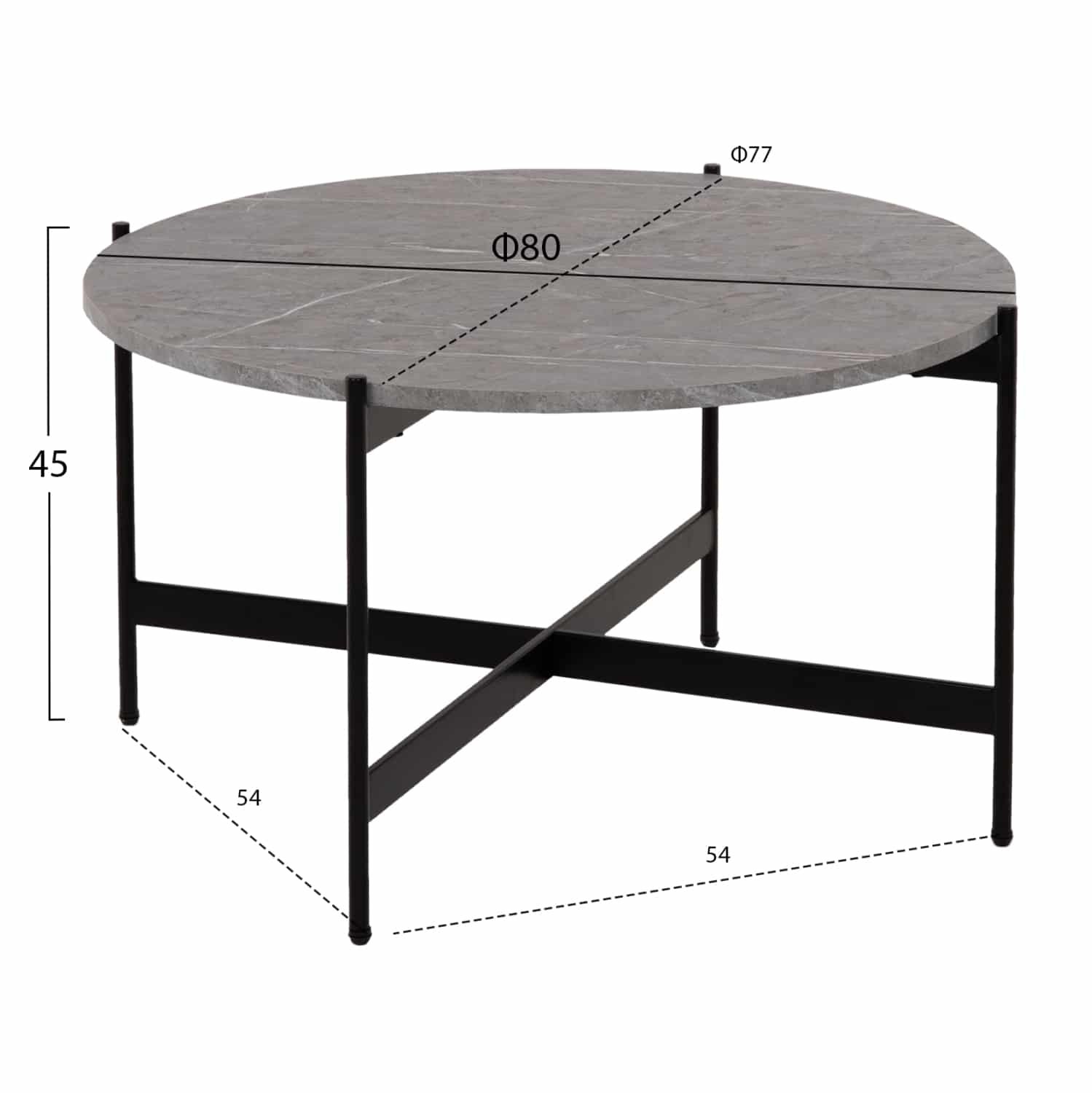 ΤΡΑΠΕΖΙ ΣΑΛΟΝΙΟΥ HM9588.02 MDF ΓΚΡΙ ΜΑΡΜΑΡΟ-ΜΑΥΡΗ ΜΕΤΑΛΛΙΚΗ ΒΑΣΗ Φ80×45Υεκ.
