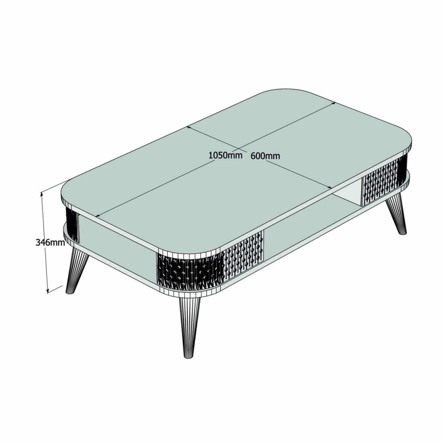 Το τραπεζάκι συμπεριλαμβανομένων και των ποδιών, είναι κατασκευασμένο από υψηλής ποιότητας μελαμίνη πάχους 18 χιλιοστών. Η μελαμίνη είναι είδος ξύλου σε μορφή μοριοσανίδας(panel). Ως υλικό είναι πολύ ανθεκτικό και με μεγάλη σκληρότητα, με αποτέλεσμα να είναι πολύ ανθεκτική στις γρατζουνιές, στην τριβή και τους λεκέδες.