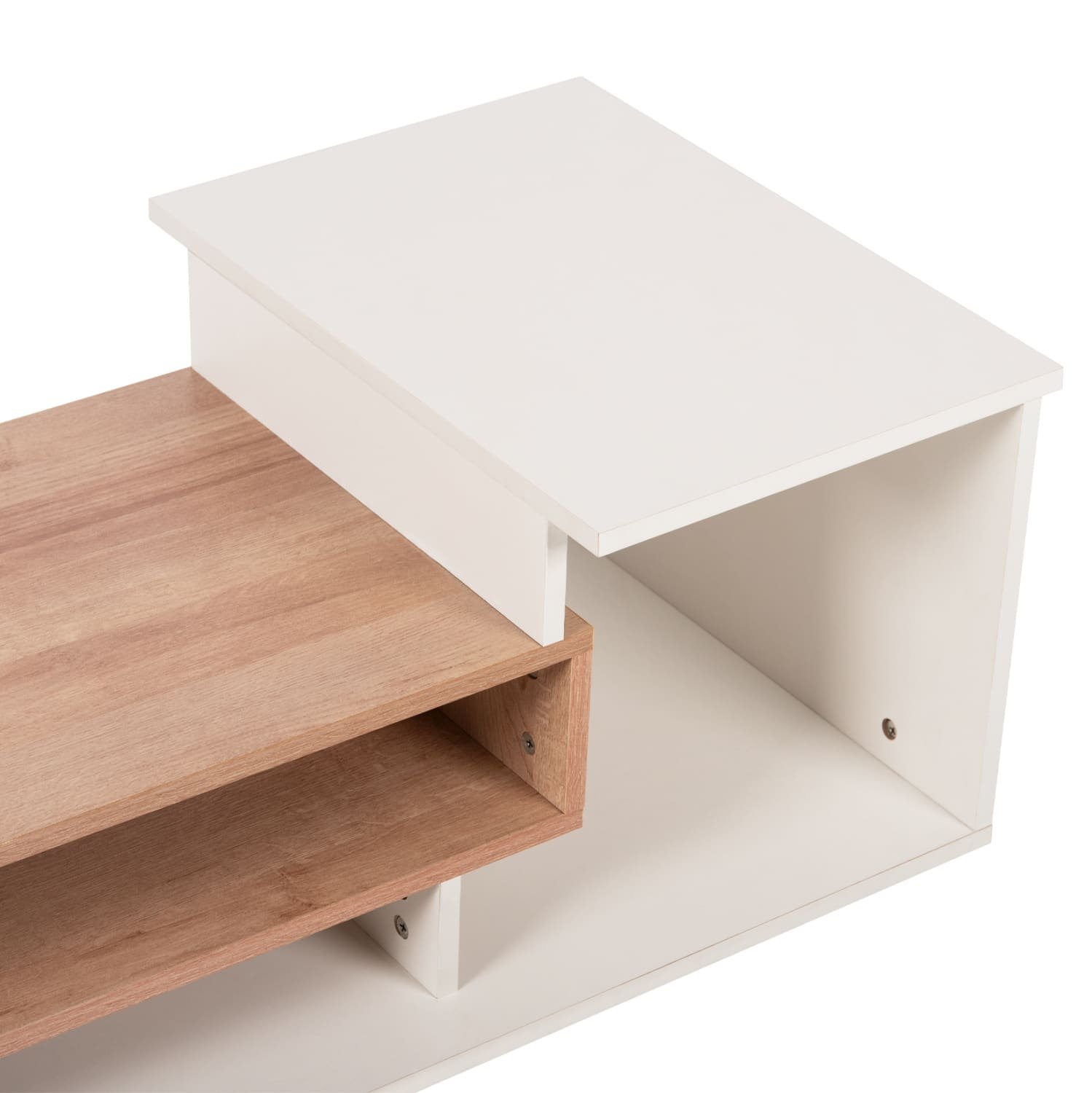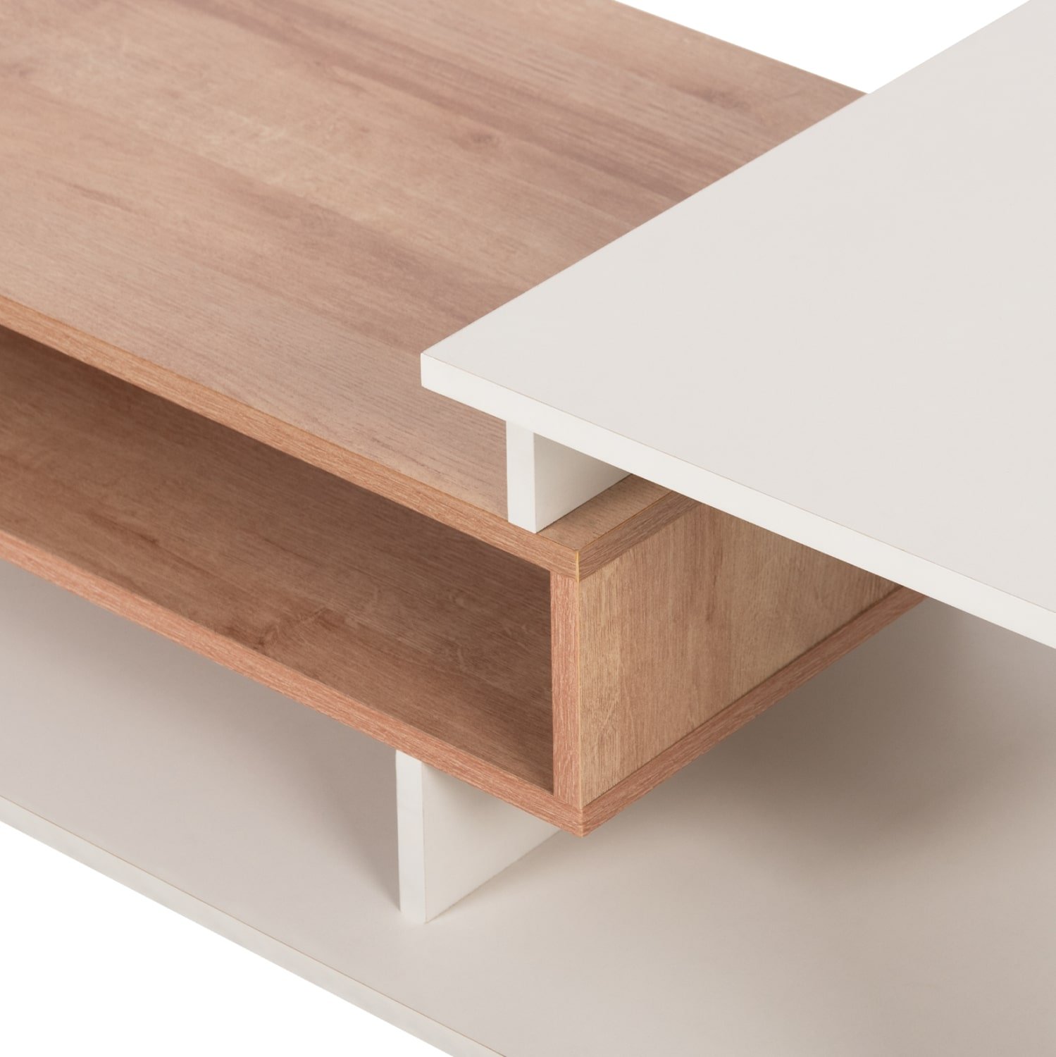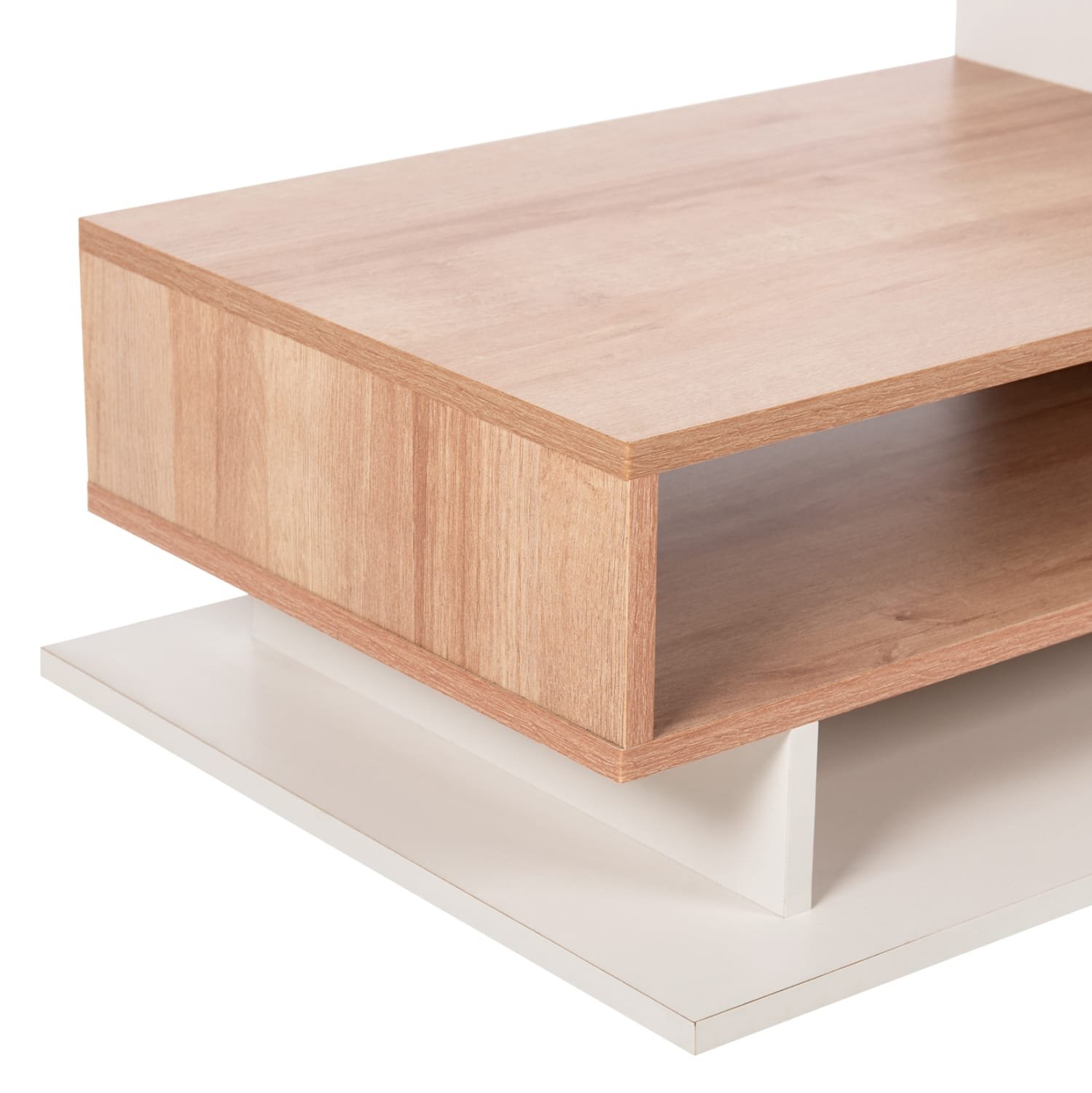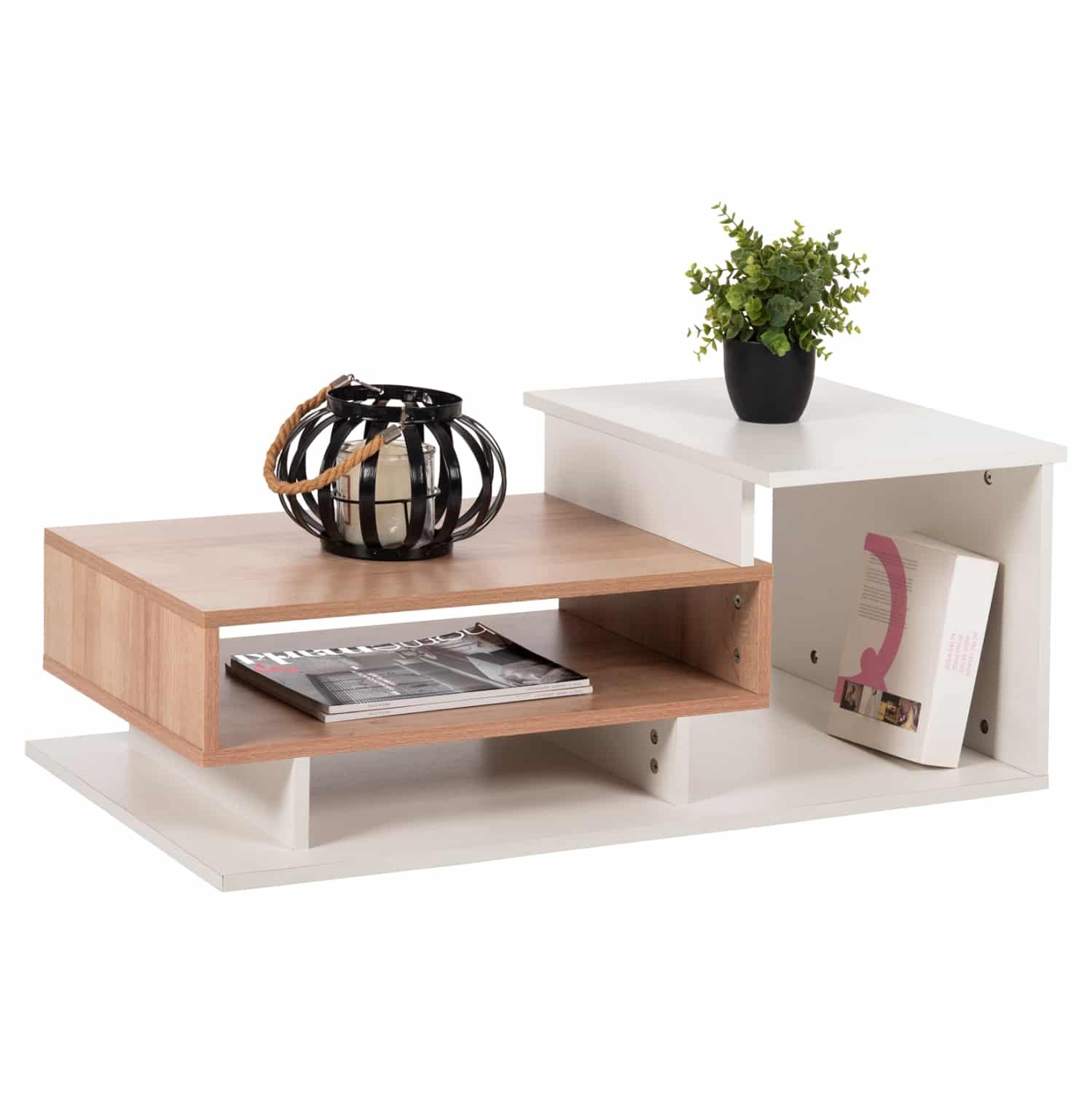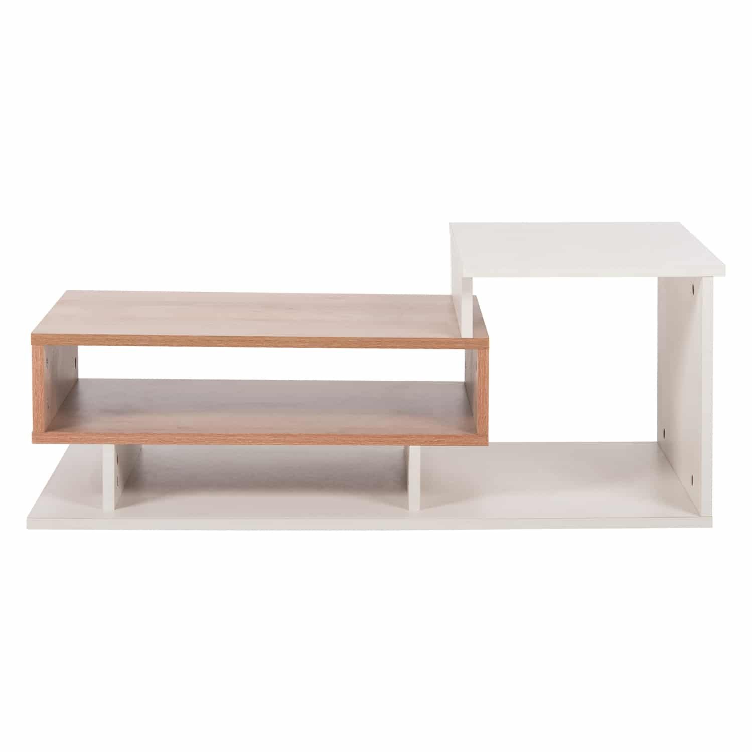 Το τραπεζάκι ROSAMUND είναι ένα όμορφο έπιπλο σε διχρωμία ΦΥΣΙΚΟΥ-ΛΕΥΚΟΥ με μοντέρνο design που θα αλλάξει την εικόνα του σαλονιού ή του καθιστικού σας προς το καλύτερο. Πρόκειται για μια κατασκευή που «πατάει» απευθείας στο πάτωμα και αποτελείται από 3 διαφορετικούς και ασύμμετρους ανοιχτούς χώρους αποθήκευσης και 2 ανισόπεδες επιφάνειες. Η διχρωμία του μπορεί να ταιριάξει με πολλά διαφορετικά περιβάλλοντα στον χώρο.