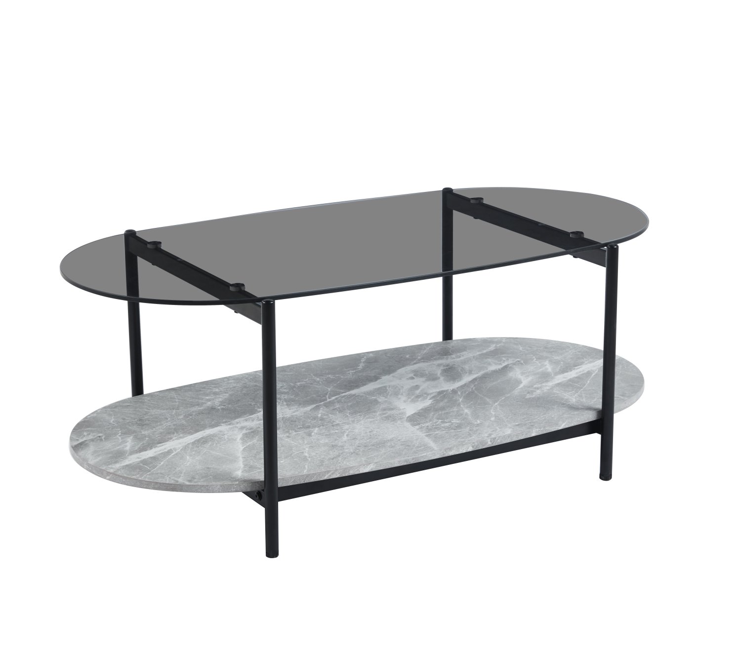 ΤΡΑΠΕΖΙ ΣΑΛΟΝΙΟΥ ΟΒΑΛ KITTY HM18040 ΓΥΑΛΙ ΦΙΜΕ TOP-GREY MARBLE ΜΕΛΑΜΙΝΗ 110x50x43Υεκ