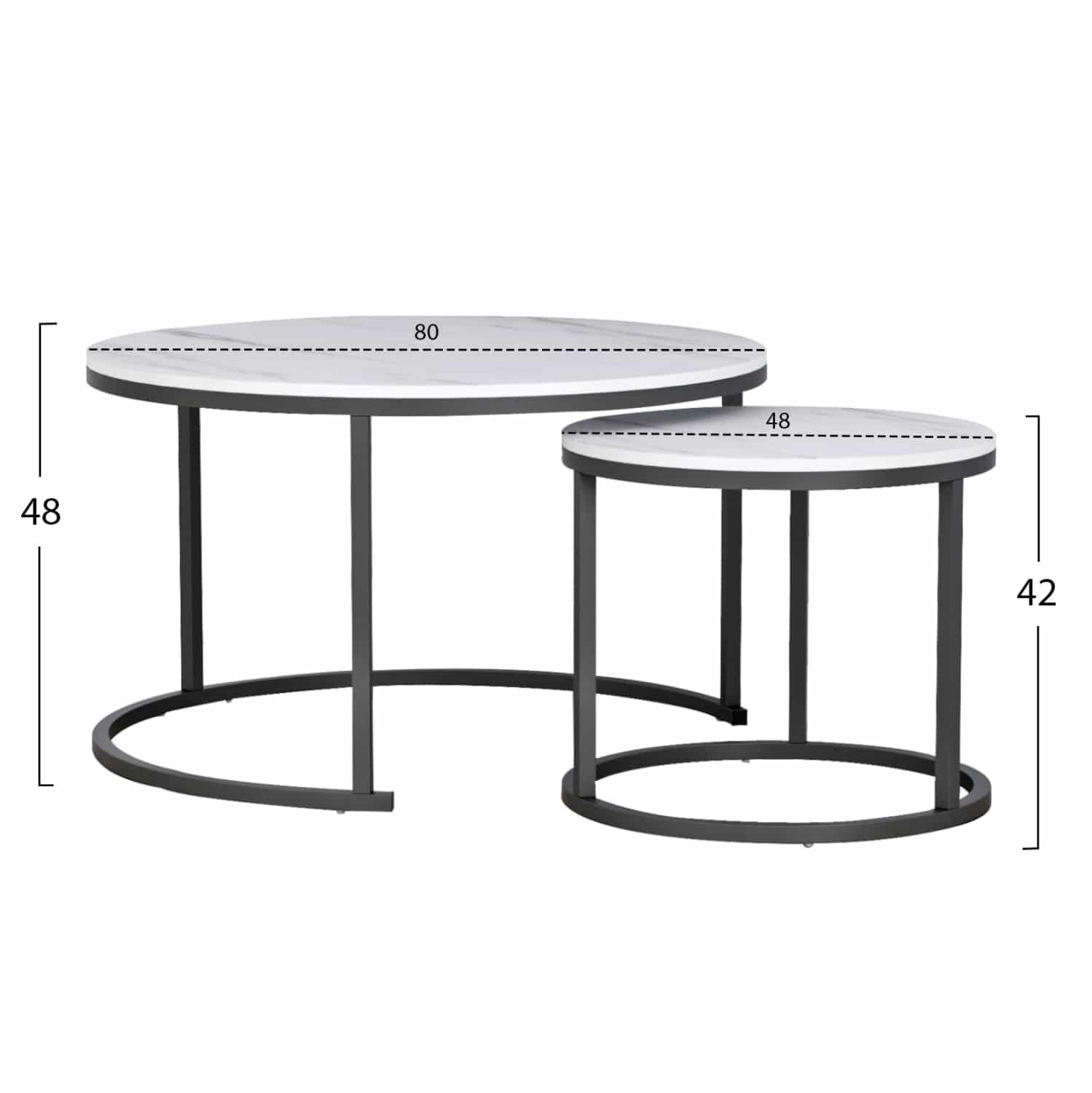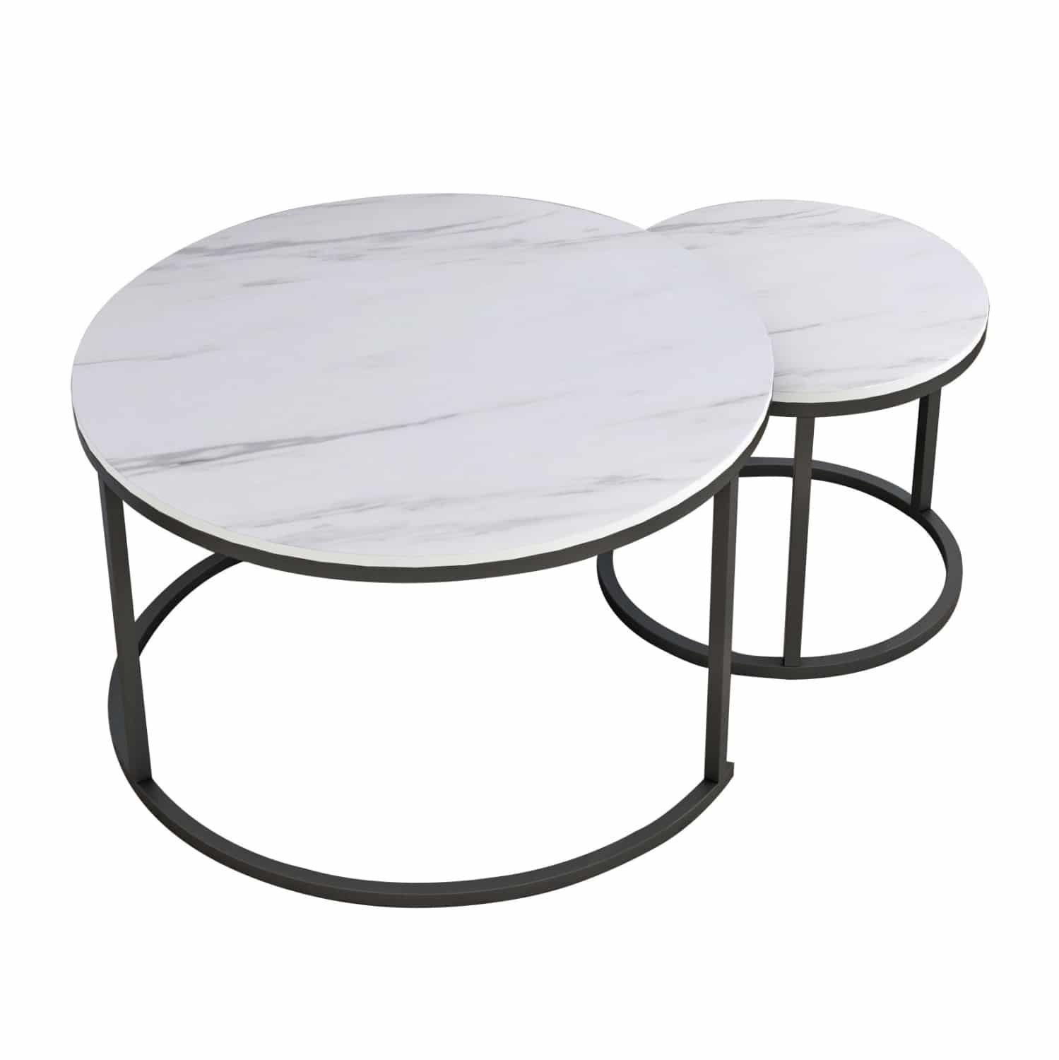 ΤΡΑΠΕΖΙ ΣΑΛΟΝΙΟΥ ΣΕΤ 2ΤΜΧ MDF ΕΦΕ ΛΕΥΚΟ ΜΑΡΜΑΡΟ ΜΕ ΜΑΥΡΑ ΠΟΔΙΑ Φ80κΦ48εκ.HM8763.12
