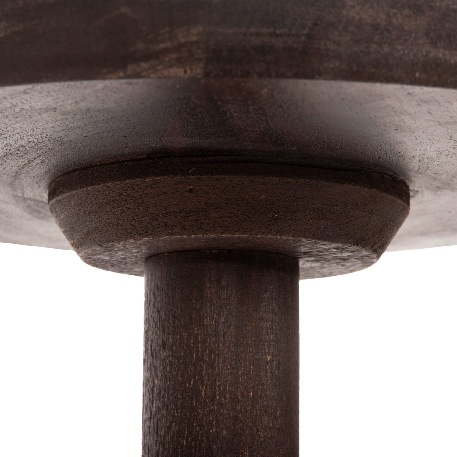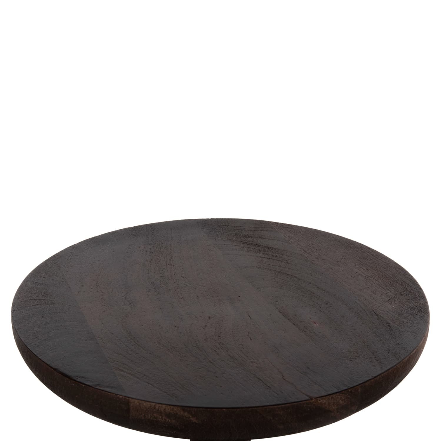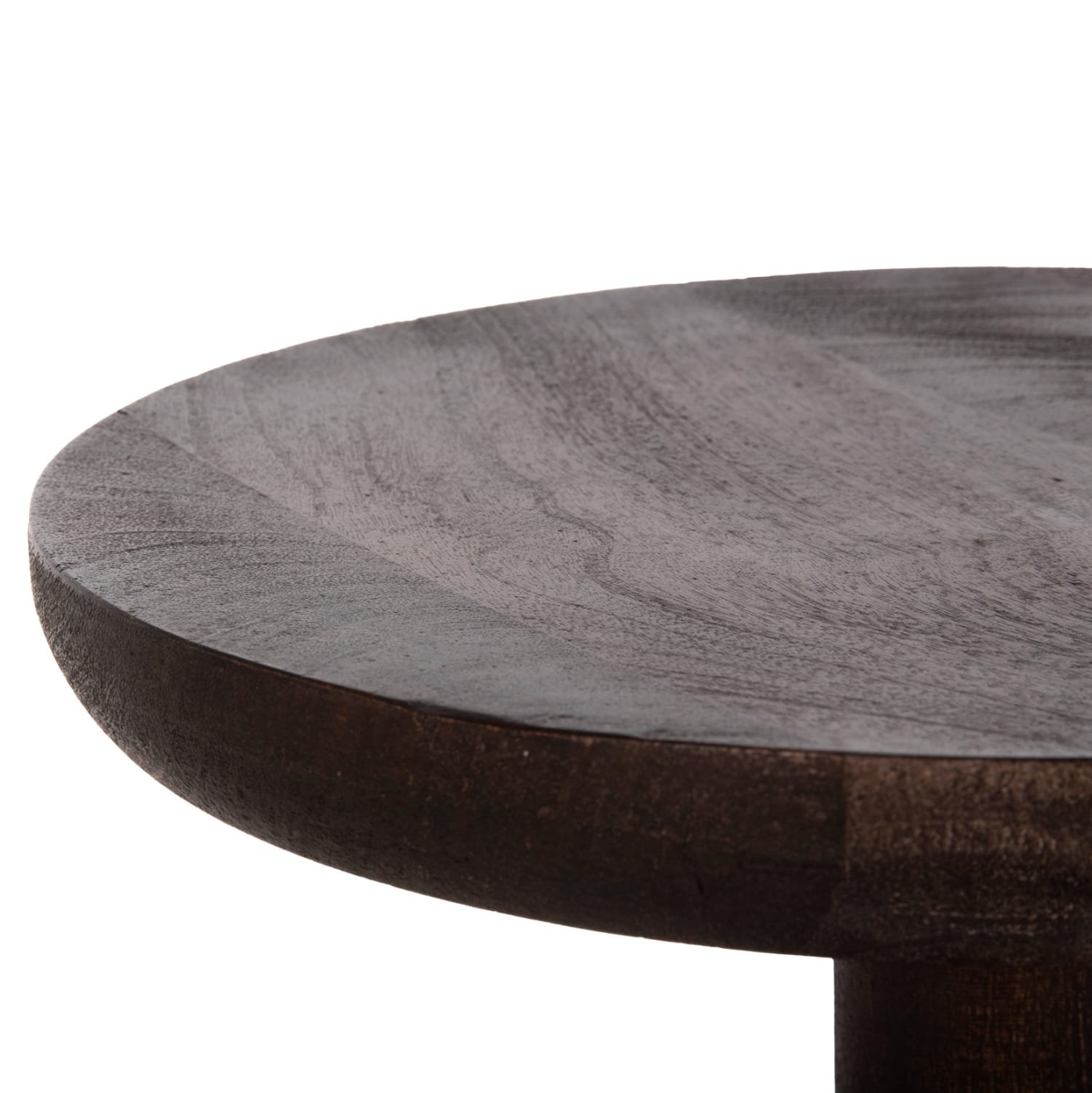 Το στρογγυλό τραπέζι σαλονιού CRABB που είναι εξολοκλήρου κατασκευασμένο από μασίφ ξύλο mango σε ΣΚΟΥΡΟ ΚΑΦΕ χρώμα μοιάζει με σκαμπό, χάρη στο κωνικό σχήμα της βάσης που καταλήγει στην στρογγυλή επιφάνεια. Ένα τραπέζι που θα εντυπωσιάσει με το σχήμα και το χρώμα του, αφού είναι sand blasted, προσδίδοντας εικόνα παλαιότητας στο έπιπλο.