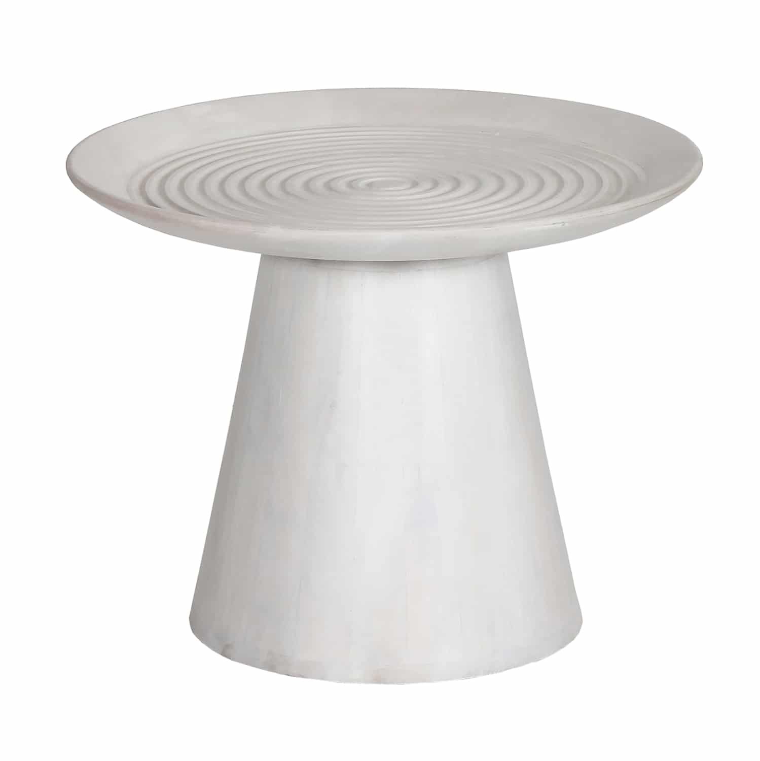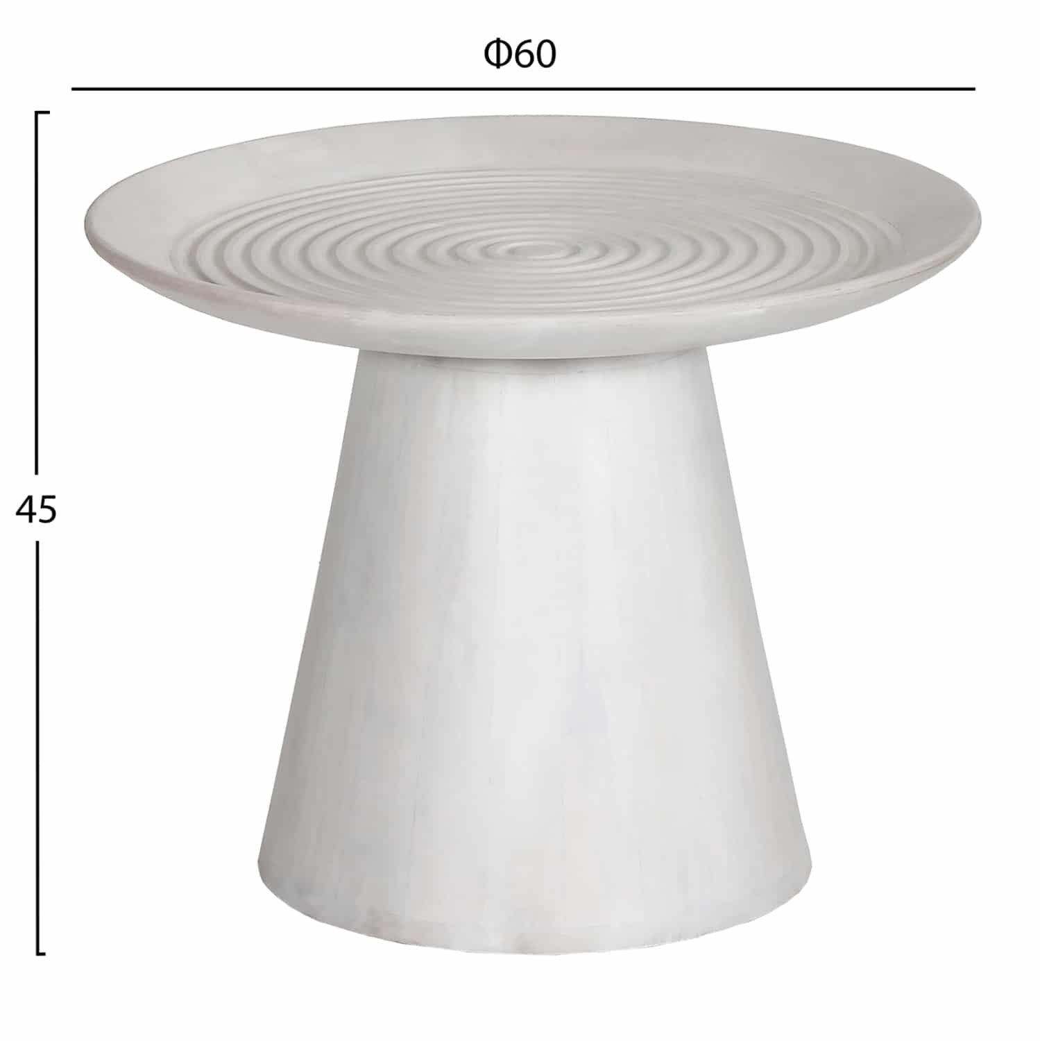 Το στρογγυλό τραπέζι σαλονιού ROSS που είναι εξολοκλήρου κατασκευασμένο από μασίφ ξύλο mango σε ΛΕΥΚΟ χρώμα έχει κωνικό σχήμα βάσης και καταλήγει στην στρογγυλή επιφάνεια με μορφή πιατέλας. Ένα τραπέζι που θα εντυπωσιάσει με το σχήμα και την πρακτικότητά του.