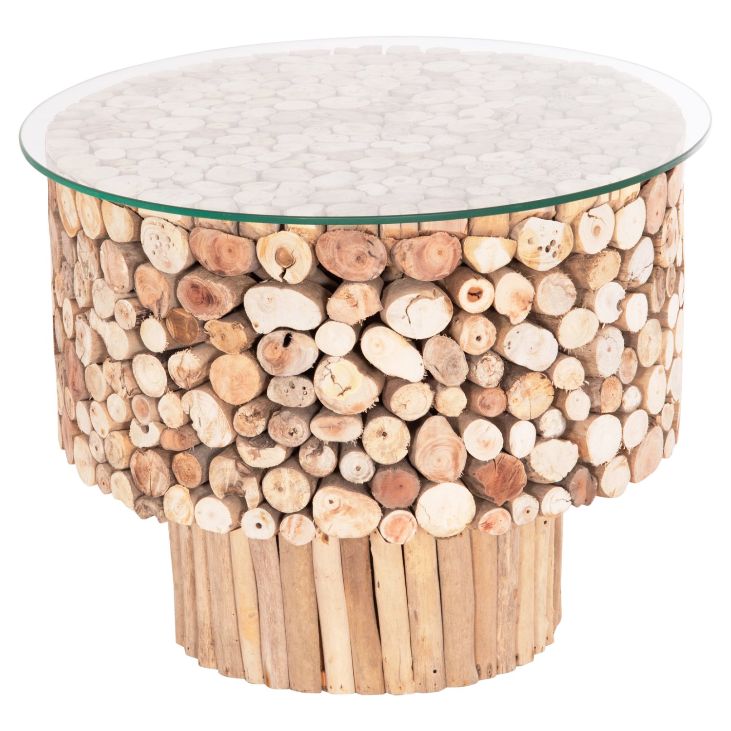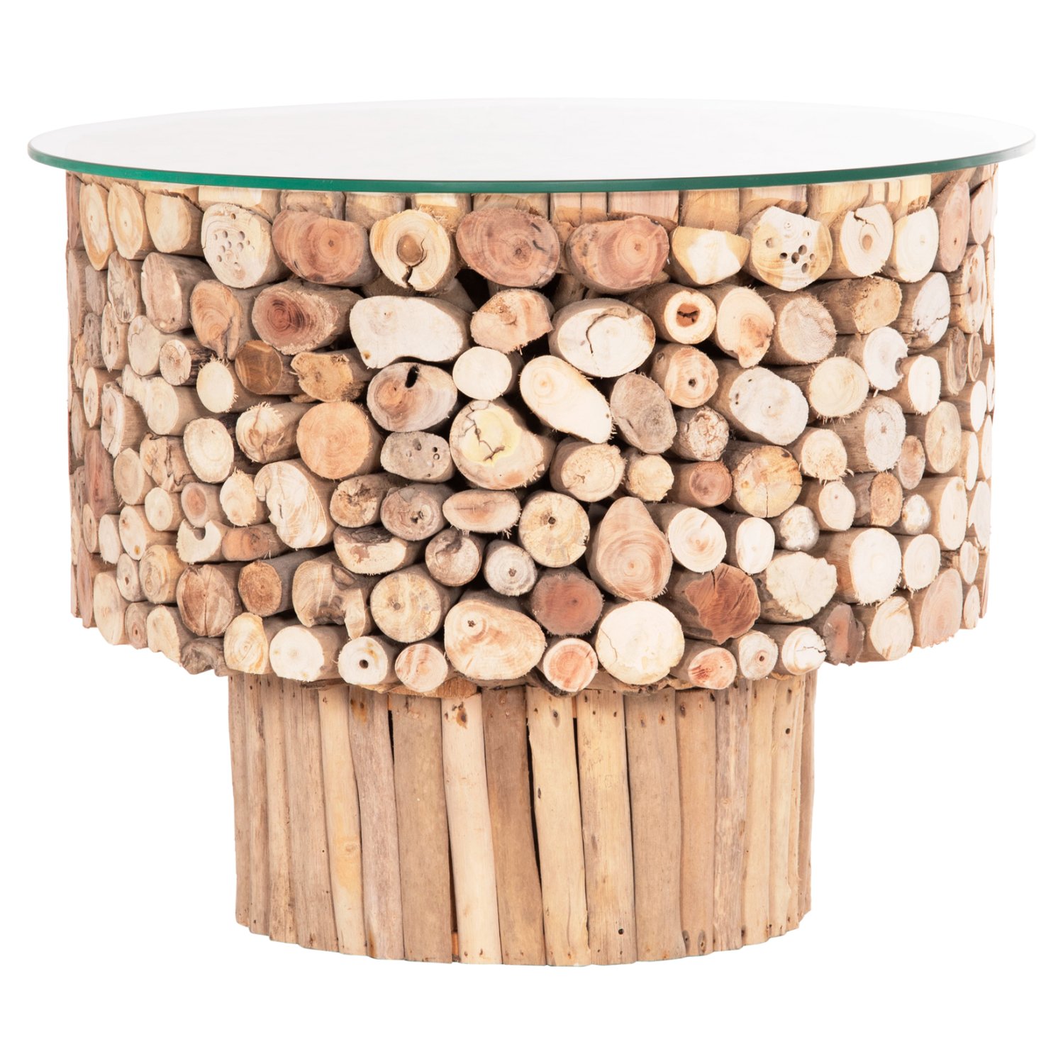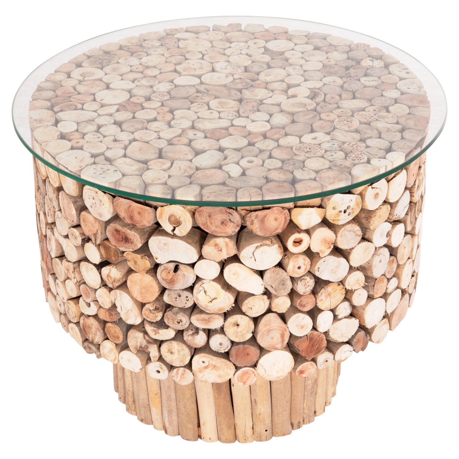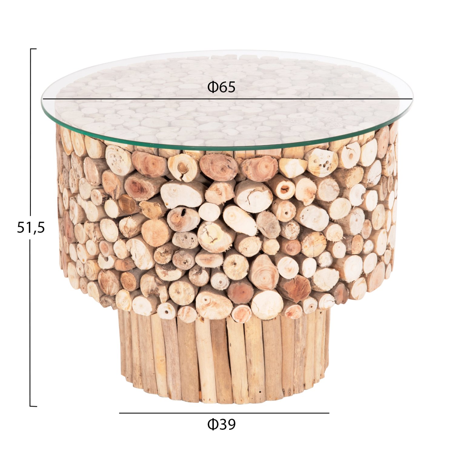 ΤΡΑΠΕΖΙ ΣΑΛΟΝΙΟΥ ΣΤΡΟΓΓΥΛΟ SPARROW HM9963 DRIFTWOOD–ΓΥΑΛΙ Φ65×51,5Υεκ.