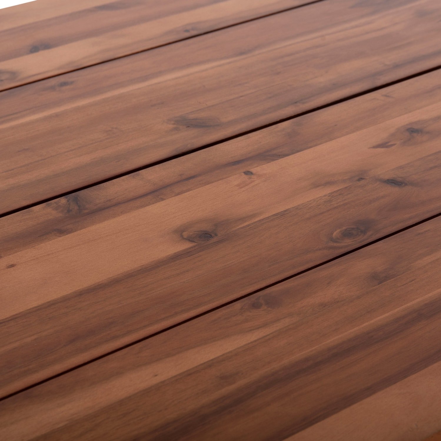 Ανακαλύψτε το μοναδικό τραπέζι για εξωτερικούς χώρους FRIGGO με επιφάνεια από φυσικό μασίφ ξύλο ΑΚΑΚΙΑΣ σε ΦΥΣΙΚΟ χρώμα. To σχήμα είναι ορθογώνιο και στηρίζεται σε δύο μαύρες μεταλλικές βάσεις. Το μοντέρνο design συναντά την φύση και δίνει μια διαχρονική και ζεστή αίσθηση στον χώρο σας.