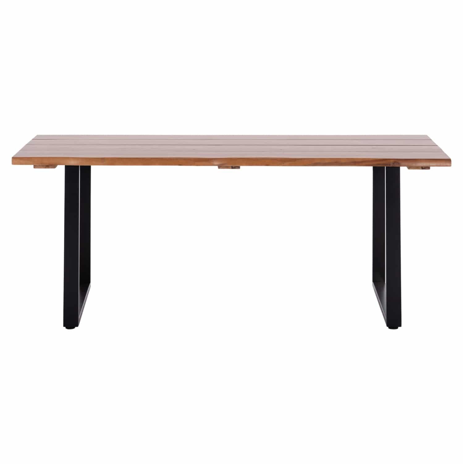Ανακαλύψτε το μοναδικό τραπέζι για εξωτερικούς χώρους FRIGGO με επιφάνεια από φυσικό μασίφ ξύλο ΑΚΑΚΙΑΣ σε ΦΥΣΙΚΟ χρώμα. To σχήμα είναι ορθογώνιο και στηρίζεται σε δύο μαύρες μεταλλικές βάσεις. Το μοντέρνο design συναντά την φύση και δίνει μια διαχρονική και ζεστή αίσθηση στον χώρο σας.