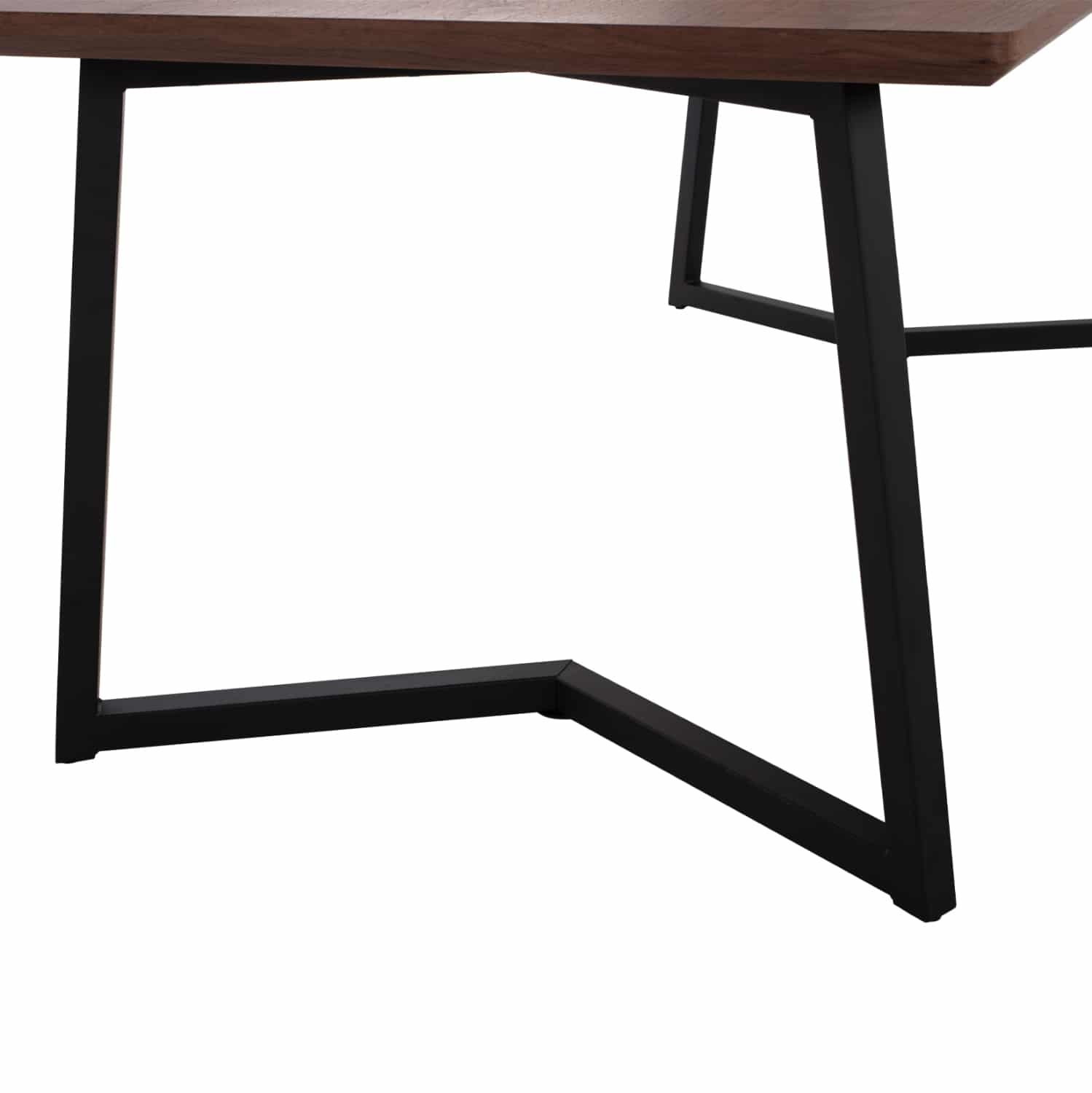 Το JAY είναι ένα μεγάλο ορθογώνιο τραπέζι για την τραπεζαρία, με επιφάνεια από MDF με καπλαμά καρυδιάς σε χρώμα σκούρο ΚΑΡΥΔΙ και σε στυλ ρουστίκ. Η επιφάνεια αυτή είναι «φαλτσοκομμένη»(δεν είναι δηλαδή τετραγωνισμένη) και στηρίζεται σε έναν μαύρο μεταλλικό σκελετόπλαίσιο με πόδια σε μοντέρνα γεωμετρία. Πρόκειται για ένα επιβλητικό τραπέζι σε μεγάλη διάσταση και με όμορφη διχρωμία, με αποτέλεσμα να μπορεί να ταιριάξει αισθητικά σχεδόν σε κάθε ανάλογο χώρο.