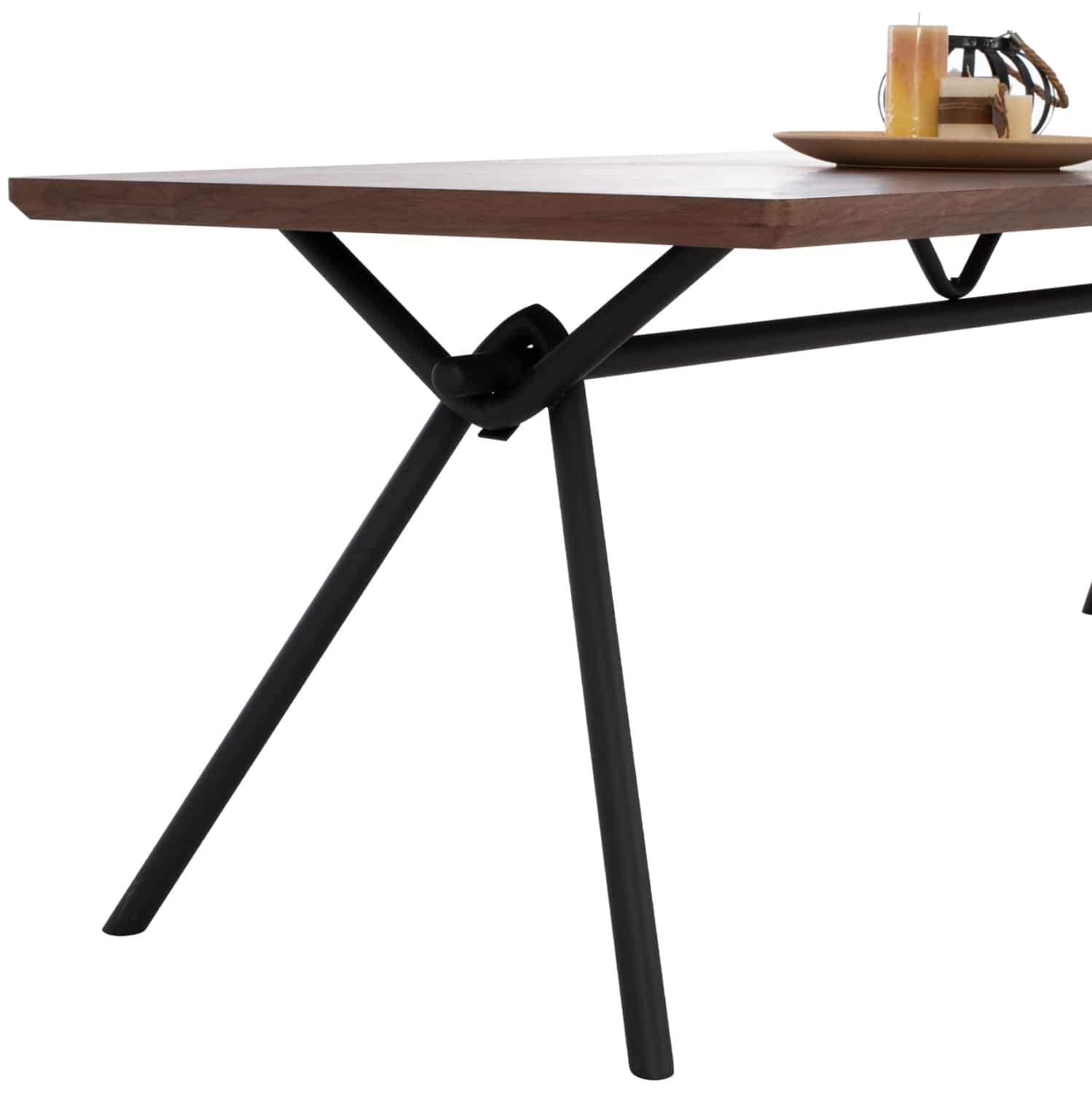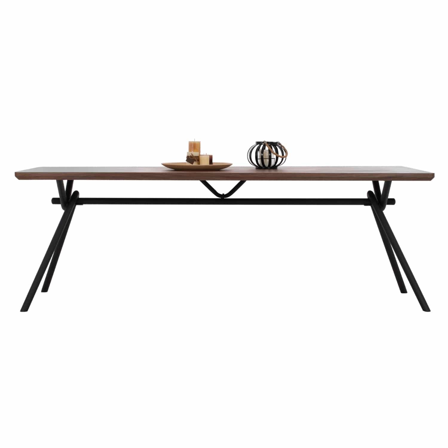 Το ΗΜ9303.02 είναι ένα μεγάλο ορθογώνιο τραπέζι για την τραπεζαρία, με επιφάνεια από MDF με καπλαμά από ξύλο καρυδιάς σε χρώμα σκούρο ΚΑΡΥΔΙ και στυλ ρουστίκ. Η επιφάνεια αυτή είναι «φαλτσοκομμένη»(δεν είναι δηλαδή τετραγωνισμένη) και στηρίζεται σε έναν μαύρο μεταλλικό σκελετόπλαίσιο με πόδια σε σχήμα πλαγιαστού Λ. Πρόκειται για ένα επιβλητικό τραπέζι σε μεγάλη διάσταση και με όμορφη διχρωμία, με αποτέλεσμα να μπορεί να ταιριάξει αισθητικά σχεδόν σε κάθε ανάλογο χώρο.