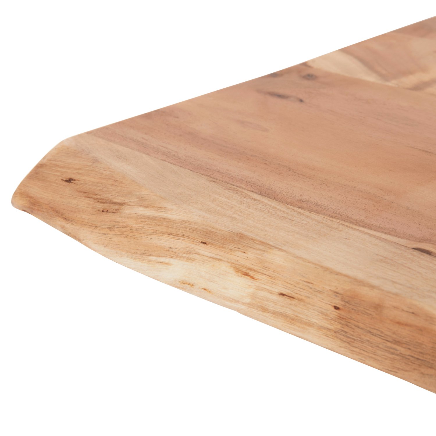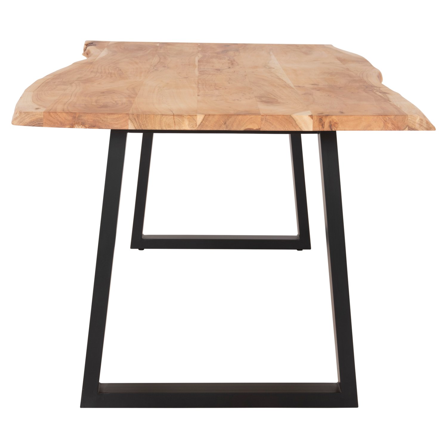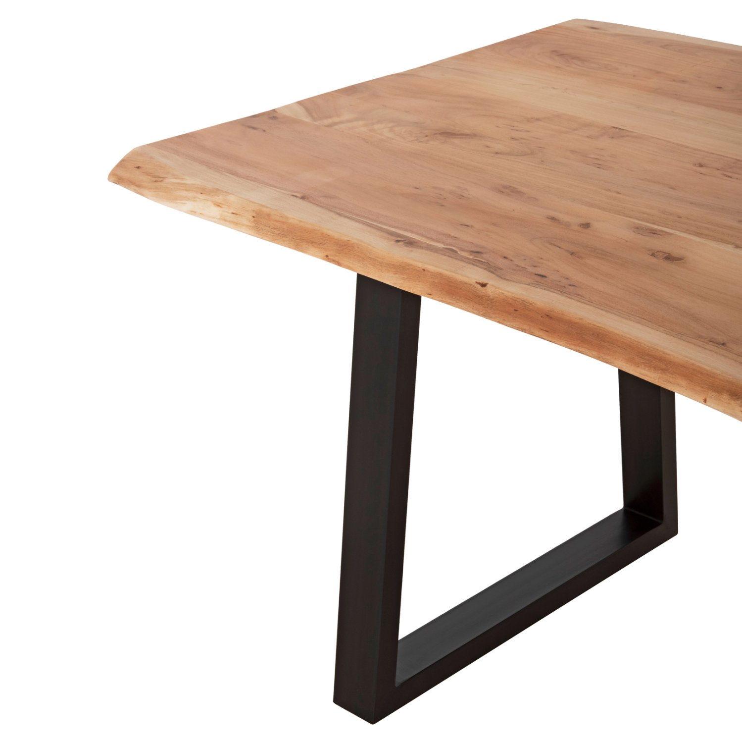 Το μοναδικό χειροποίητο τραπέζι ΜΟΝΤΑΝΑ διαθέτει επιφάνεια από φυσικό μασίφ ξύλο ΑΚΑΚΙΑΣ σε ΑΝΟΙΧΤΟ ΦΥΣΙΚΟ χρώμα. To σχήμα είναι ΑΚΑΝΟΝΙΣΤΟ ορθογώνιο και στηρίζεται σε δύο μαύρες μεταλλικές βάσεις με τραπεζοειδές σχήμα. Το μοντέρνο design συναντά την φύση και δίνει μια διαχρονική και ζεστή αίσθηση στον χώρο σας. Συνδυάστε τo με ένα ξύλινο παγκάκι ή μια καρέκλα με την ίδια αισθητική και αποκτήστε την τραπεζαρία που πάντα επιθυμούσατε.