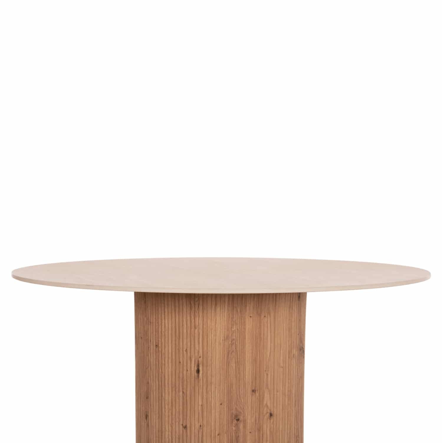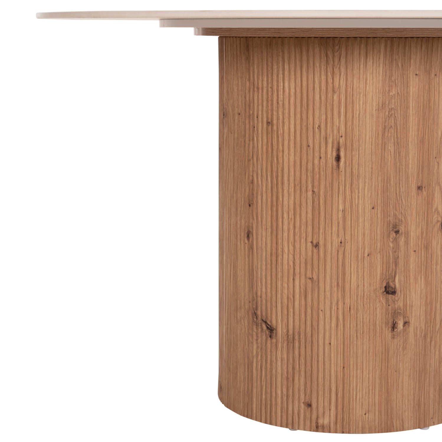 Το τραπέζι τραπεζαρίας TWIL είναι στρογγυλό και αποτελεί νέα προσθήκη στην γκάμα μας. Η επίπεδη επιφάνειά του είναι κεραμική σε χρωματισμό TRAVERTINE STONE, ενώ η βάση του είναι κυλινδρική κατασκευασμένη εξολοκλήρου από MDF σε χρώμα ΦΥΣΙΚΟΥ ΞΥΛΟΥ, με όμορφες πτυχώσεις.