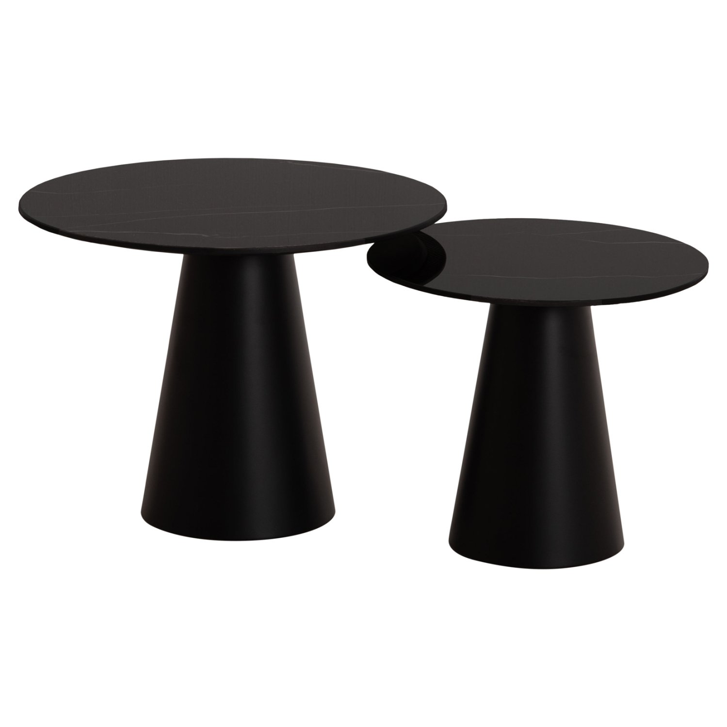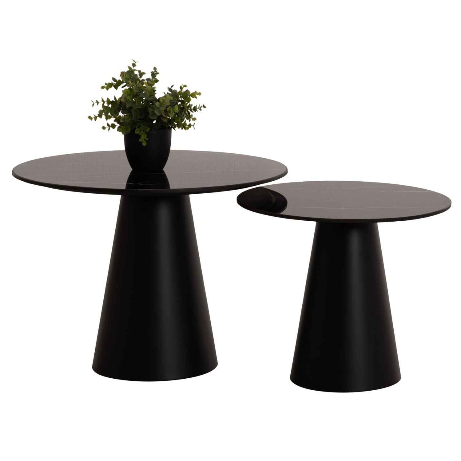 Το σετ 2 τραπεζιών DIEN για το σαλόνι είναι μια από τις νέες προσθήκες στην γκάμα μας. Πρόκειται για 2 μεταλλικά τραπεζάκια στρογγυλά με κωνική βάση με πτυχώσεις. Το χρώμα τους είναι ΜΑΥΡΟ. Οι επιφάνειες είναι κεραμικές, σε ΜΑΥΡΗ απόχρωση. Ιδανικά τόσο για το σπίτι, όσο και για επαγγελματικούς χώρους.