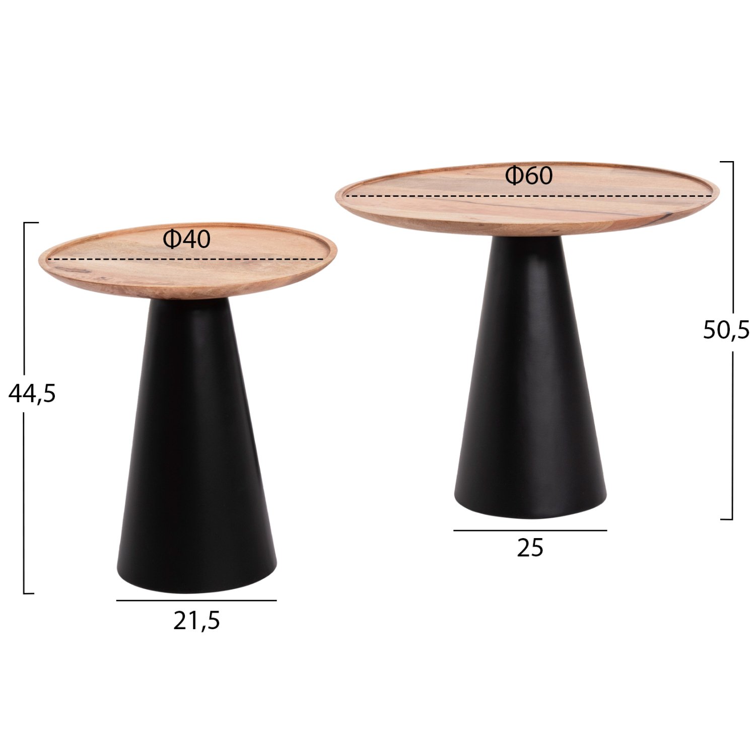 ΤΡΑΠΕΖΙA ΣΑΛΟΝΙΟΥ 2ΤΜΧ RIFF HM9997 ΞΥΛΟ MANGO-ΜΕΤΑΛΛΙΚΕΣ ΒΑΣΕΙΣ Φ60 & Φ40 εκ.