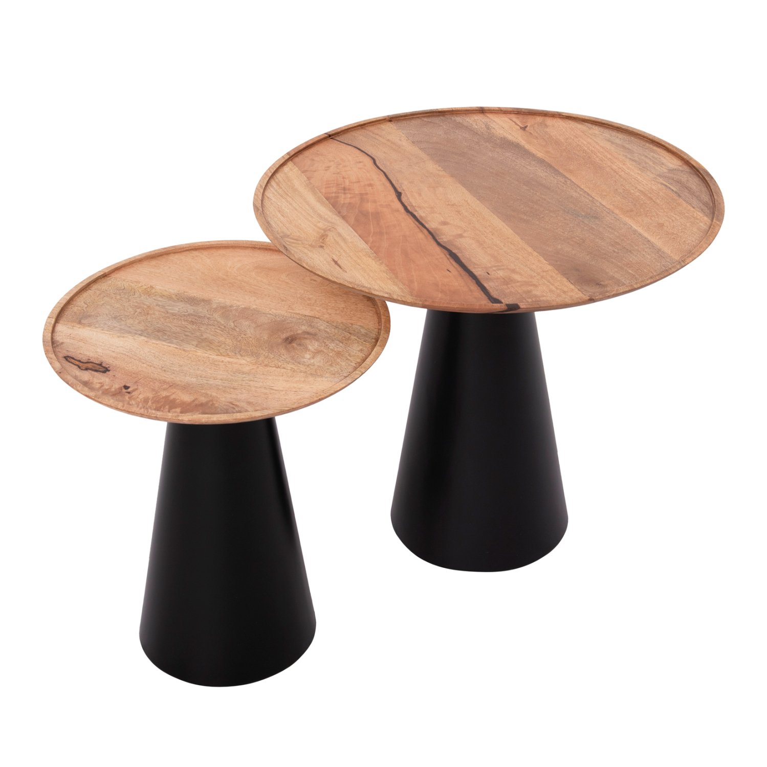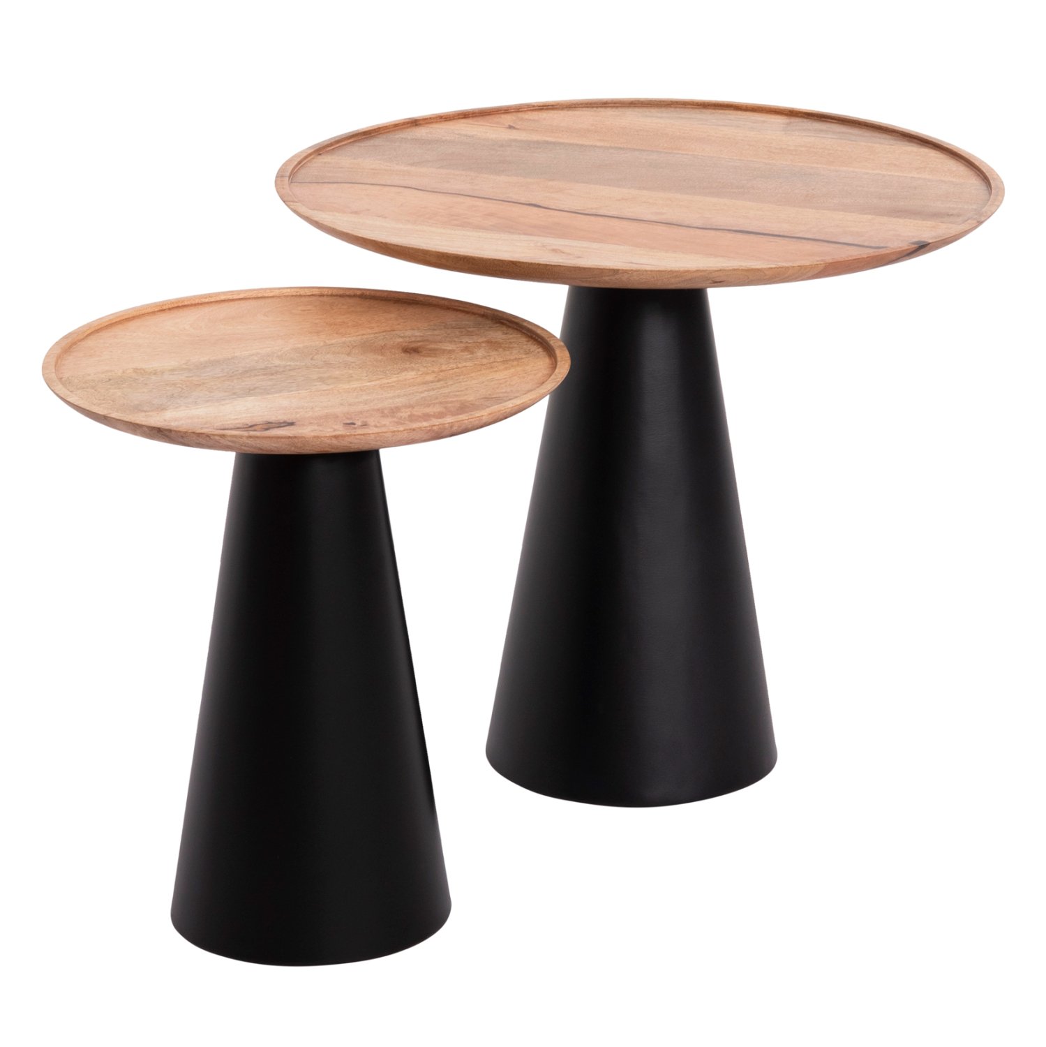 Το RIFF είναι ένα σετ που αποτελείται από 2 τραπέζια σαλονιού με διαφορετικές διαστάσεις. Οι στρογγυλές επιφάνειες είναι από ξύλο mango σε ΦΥΣΙΚΟ χρώμα, ενώ οι κωνικές βάσεις είναι μεταλλικές σε μαύρο ματ χρώμα. Ένα σετ που μπορεί να καλύψει τις ανάγκες σε όποιο χώρο επιθυμείτε.