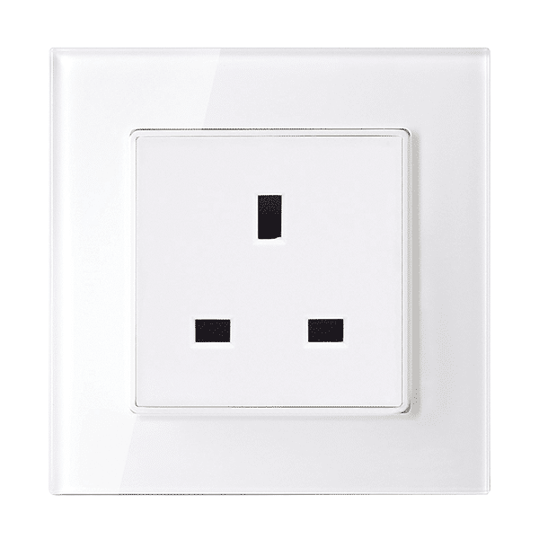 UK TYPE SOCKET 13A GLASS FRAME WHITE