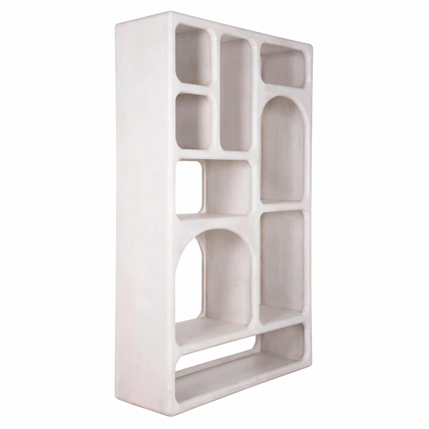 Η βιβλιοθήκη HANDYR είναι εξολοκλήρου κατασκευασμένη από μασίφ ξύλο mango σε ΛΕΥΚΟ χρώμα. Διαθέτει 9 ανοιχτούς χώρους διάφορων μεγεθών για αποθήκευση ή τοποθέτηση αντικειμένων. Αυτή η βιβλιοθήκη είναι κομψή και όμορφη και θα δώσει μια επιπλέον επιλογή για να ολοκληρώσετε την διακόσμησή σας.
