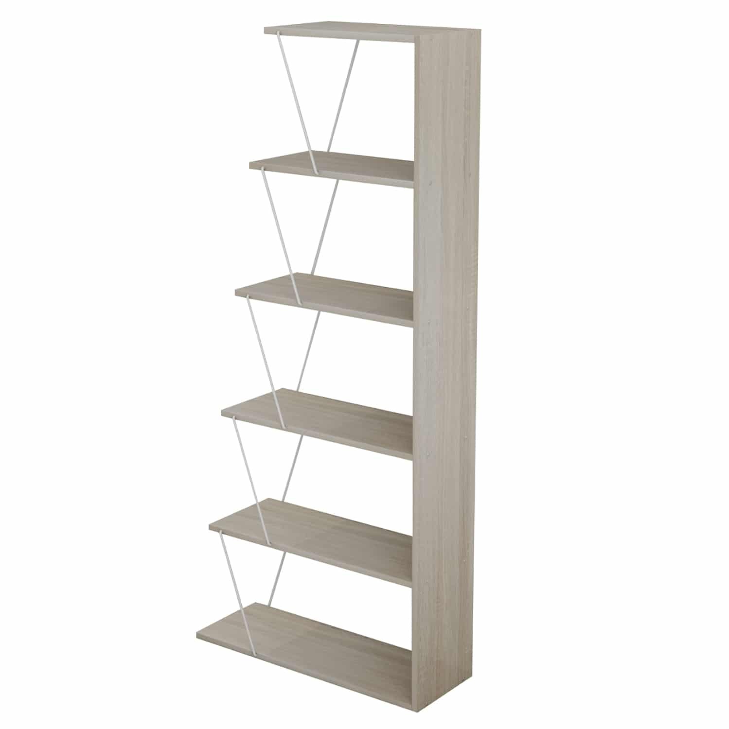 Διαθέτει 4 ράφια τοποθέτησης σε σχήμα σκάλας, τα οποία στηρίζονται μεταξύ τους με μεταλλικές ράβδους σύν ένα ράφι που είναι η κάτω επιφάνεια της βιβλιοθήκης, ενώ οι διαστάσεις της την καθιστούν βολική για πολλούς χώρους.