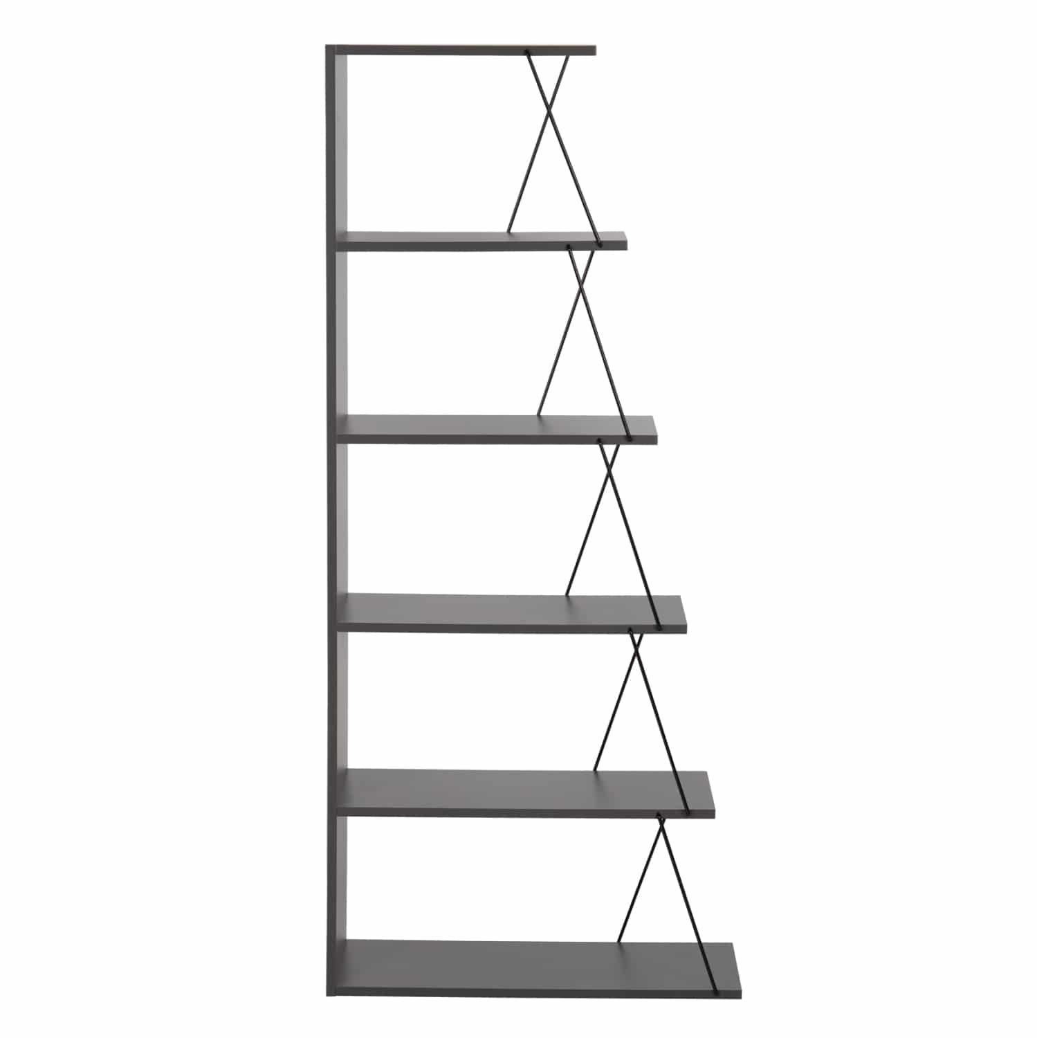 Η βιβλιοθήκη ΜΙΝΙ TARS είναι μια μοντέρνα πρόταση για το γραφείο σας ή οπουδήποτε αλλού θέλετε να τοποθετήσετε μια βιβλιοθήκη. Διαθέτει 4 ράφια τοποθέτησης σε σχήμα σκάλας, τα οποία στηρίζονται μεταξύ τους με μεταλλικές ράβδους σύν ένα ράφι που είναι η κάτω επιφάνεια της βιβλιοθήκης, ενώ οι διαστάσεις της την καθιστούν βολική για πολλούς χώρους. Το χρώμα της είναι ΓΚΡΙ με ΜΑΥΡΕΣ ράβδους.