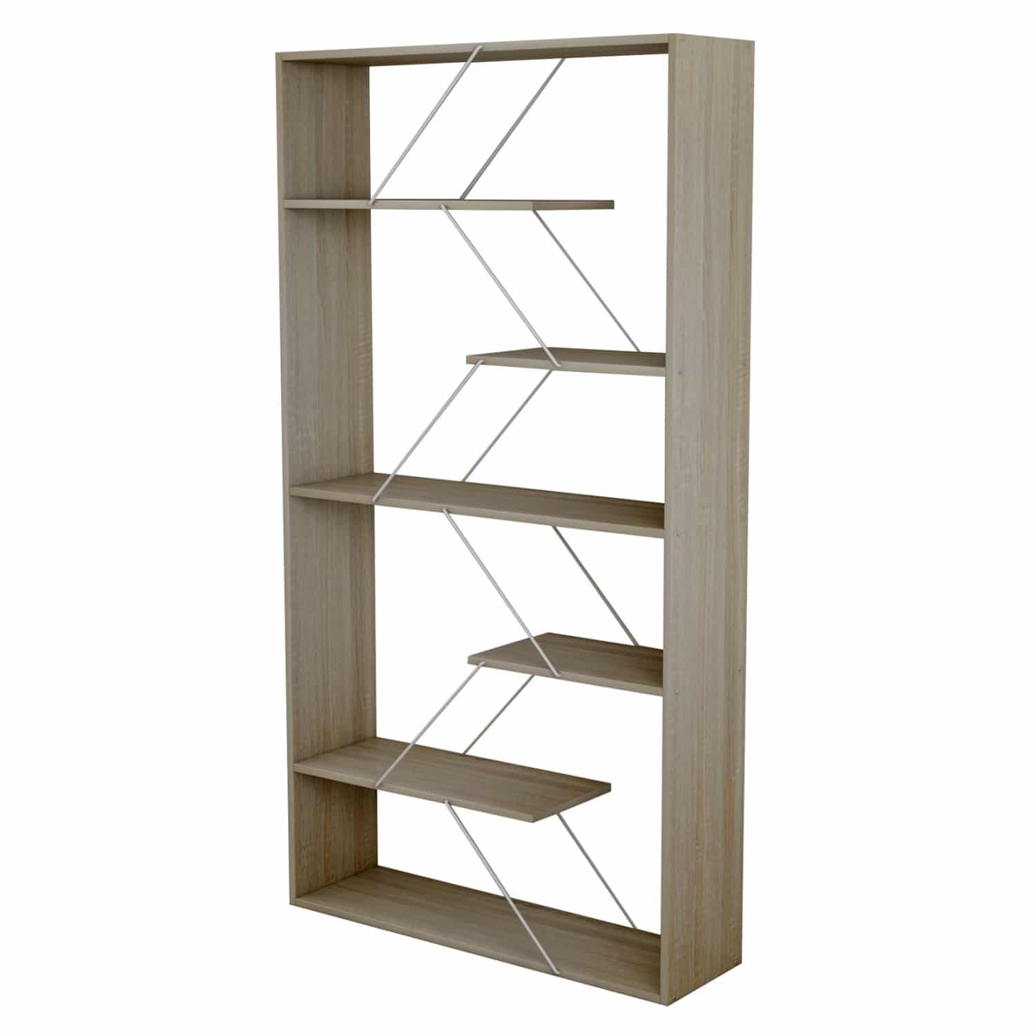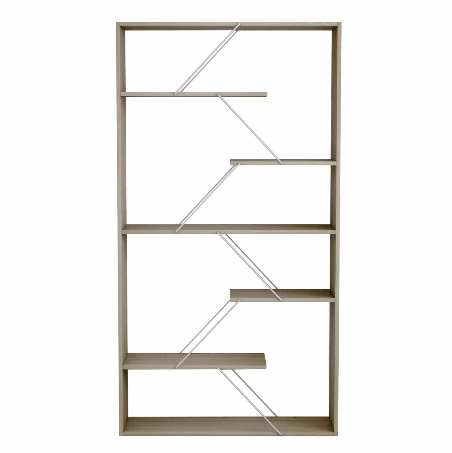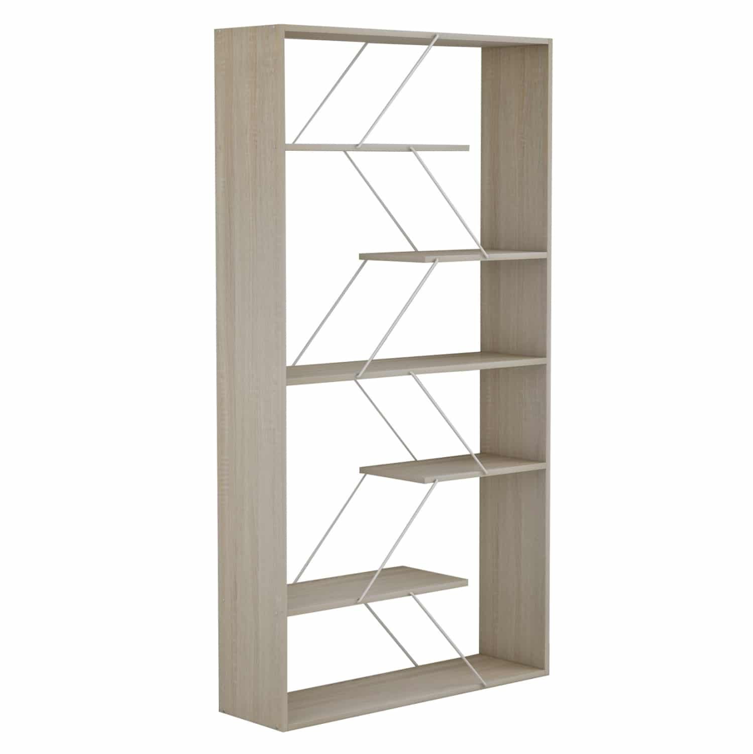 Η βιβλιοθήκη TARS είναι μια μοντέρνα πρόταση για το γραφείο σας ή οπουδήποτε αλλού θέλετε να τοποθετήσετε μια βιβλιοθήκη. Διαθέτει 5 ράφια τοποθέτησης που δεν πιάνουν όλο το μήκος της βιβλιοθήκης αλλά στηρίζονται μεταξύ τους με μεταλλικές ράβδους σύν ένα ράφι που είναι η κάτω επιφάνεια της βιβλιοθήκης, ενώ οι διαστάσεις της την καθιστούν βολική για πολλούς χώρους. Το χρώμα της είναι SONOMA με ΛΕΥΚΕΣ ράβδους.