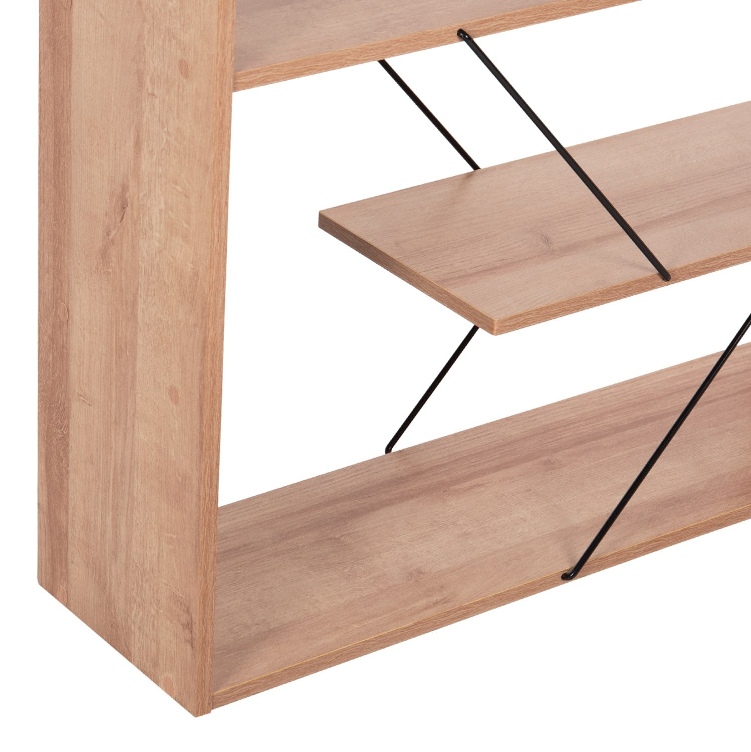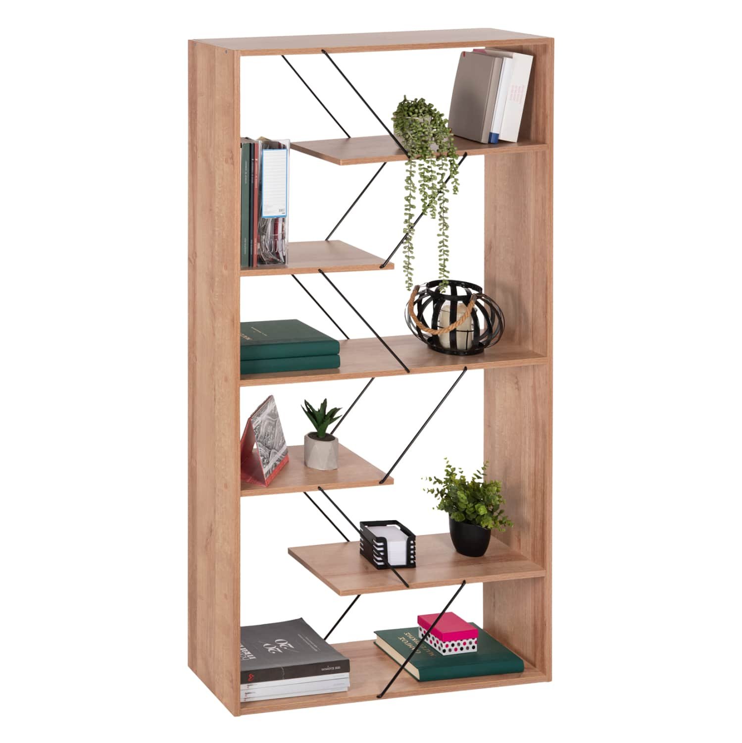 Η βιβλιοθήκη TARS είναι μια μοντέρνα πρόταση για το γραφείο σας ή οπουδήποτε αλλού θέλετε να τοποθετήσετε μια βιβλιοθήκη. Διαθέτει 5 ράφια τοποθέτησης που δεν πιάνουν όλο το μήκος της βιβλιοθήκης αλλά στηρίζονται μεταξύ τους με μεταλλικές ράβδους σύν ένα ράφι που είναι η κάτω επιφάνεια της βιβλιοθήκης, ενώ οι διαστάσεις της την καθιστούν βολική για πολλούς χώρους. Το χρώμα της είναι ΦΥΣΙΚΟ ΟΑΚ με ΜΑΥΡΕΣ ράβδους.