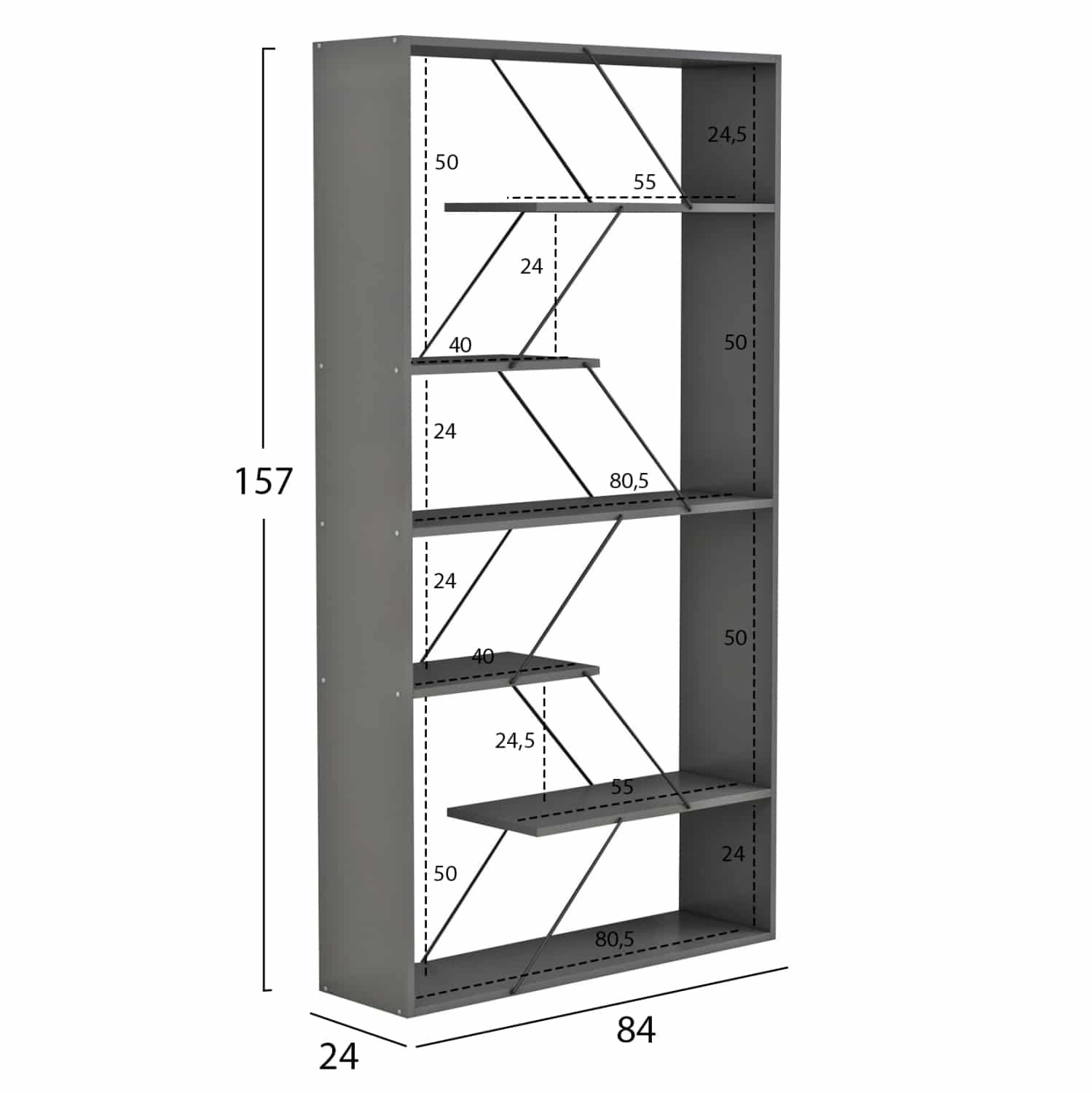 ΒΙΒΛΙΟΘΗΚΗ TARS HM2240.20 ΓΚΡΙ ΜΕΛΑΜΙΝΗ-ΜΑΥΡΕΣ ΜΕΤΑΛΛΙΚΕΣ ΒΕΡΓΕΣ 84x24x157Υεκ.