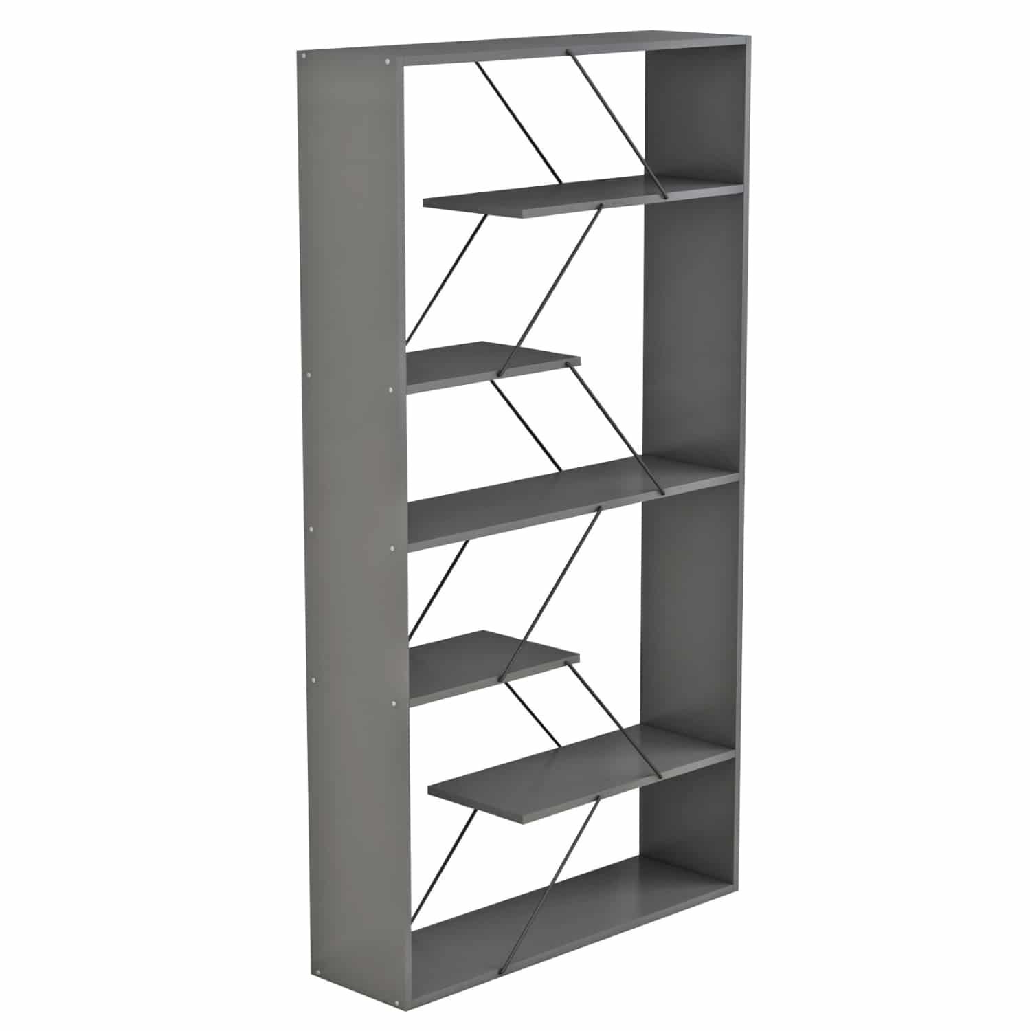 Η βιβλιοθήκη TARS είναι μια μοντέρνα πρόταση για το γραφείο σας ή οπουδήποτε αλλού θέλετε να τοποθετήσετε μια βιβλιοθήκη. Διαθέτει 5 ράφια τοποθέτησης που δεν πιάνουν όλο το μήκος της βιβλιοθήκης αλλά στηρίζονται μεταξύ τους με μεταλλικές ράβδους σύν ένα ράφι που είναι η κάτω επιφάνεια της βιβλιοθήκης, ενώ οι διαστάσεις της την καθιστούν βολική για πολλούς χώρους. Το χρώμα της είναι ΓΚΡΙ με ΜΑΥΡΕΣ ράβδους.