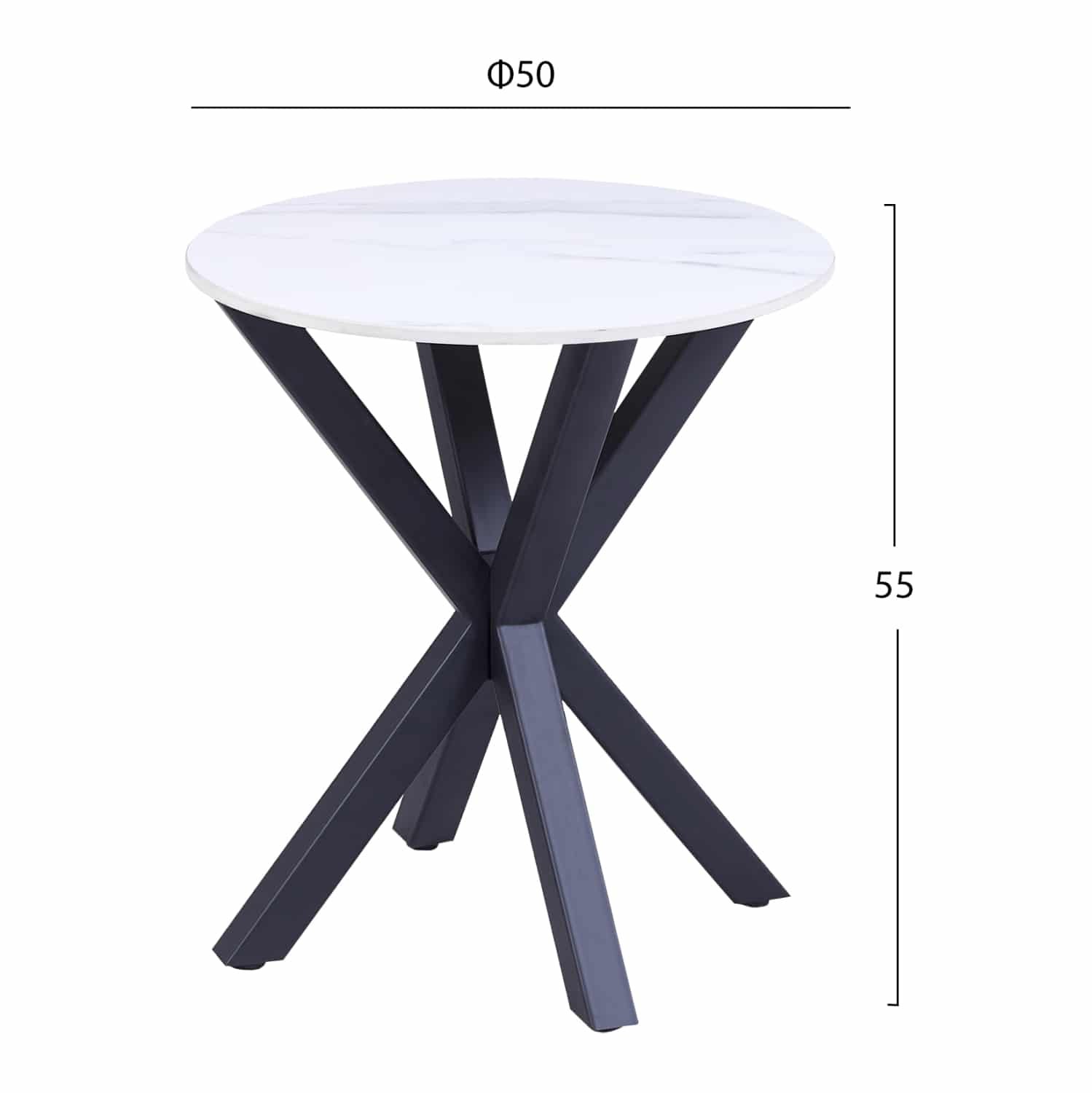 ΒΟΗΘΗΤΙΚΟ ΤΡΑΠΕΖΑΚΙ ΣΤΡΟΓΓΥΛΟ HM9473.06 WHITE MARBLE ΕΠΙΦΑΝΕΙΑ ΜΑΥΡΗ ΒΑΣΗ Φ50×55Υεκ.