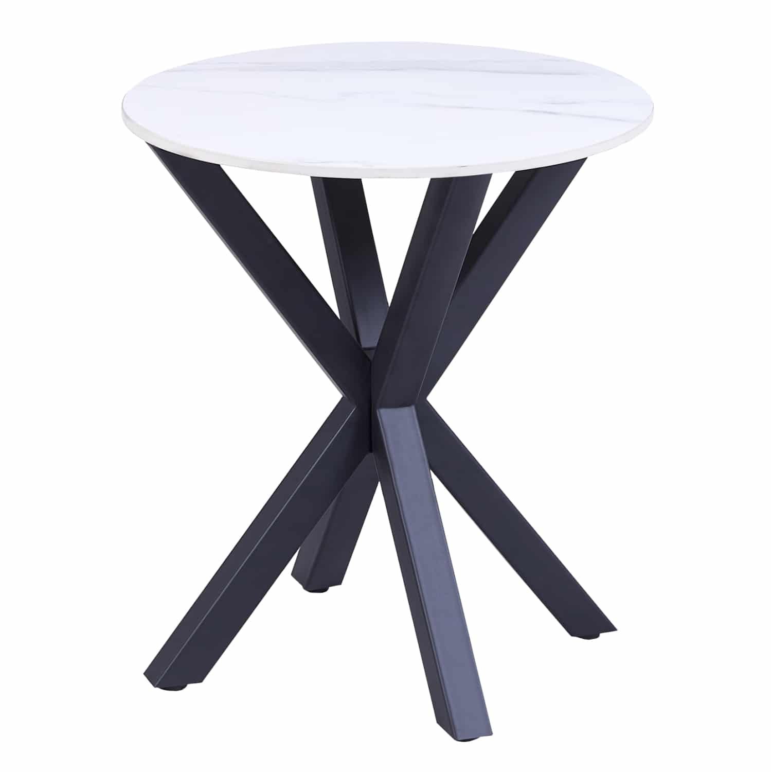 Το τραπεζάκι ΗΜ9473.06 θα σας εκπλήξει με το στυλ και την πρακτικότητά του. Πρόκειται για ένα στρογγυλό τραπεζάκι με ιδιαίτερο χαρακτηριστικό ότι η επιφάνεια σε απόχρωση ΛΕΥΚΟΥ ΜΑΡΜΑΡΟΥ στηρίζεται σε μια ΜΑΥΡΗ βάση με διπλοχιαστί διάταξη.