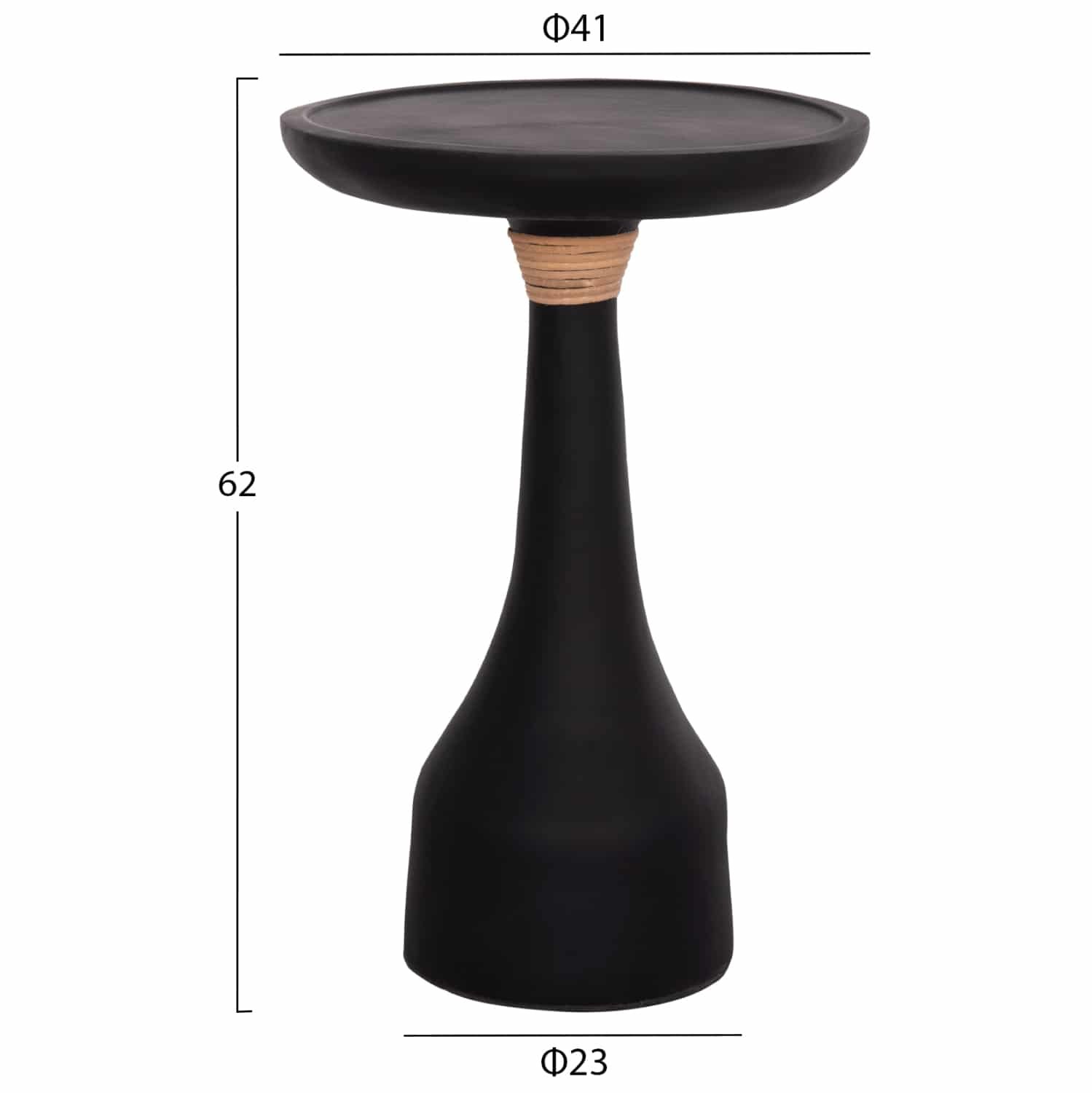 Το ψηλό βοηθητικό τραπέζι TORG είναι στρογγυλό και κομψό. Είναι κατασκευασμένο εξολοκλήρου από Fiber Cement σε ΜΑΥΡΟ χρώμα με σχοινί στον ψηλό λαιμό ως διακόσμηση και αποτελεί ιδανικό συμπλήρωμα τόσο για το σπίτι, όσο και για επαγγελματικούς χώρους, όπως ξενοδοχεία, AirBnB, κτλ. Μπορείτε να το χρησιμοποιήσετε ως τραπεζάκι-βάση για επιτραπέζιο φωτιστικό/λαμπατέρ δίνοντας μια διαφορετική εικόνα στον χώρο σας!