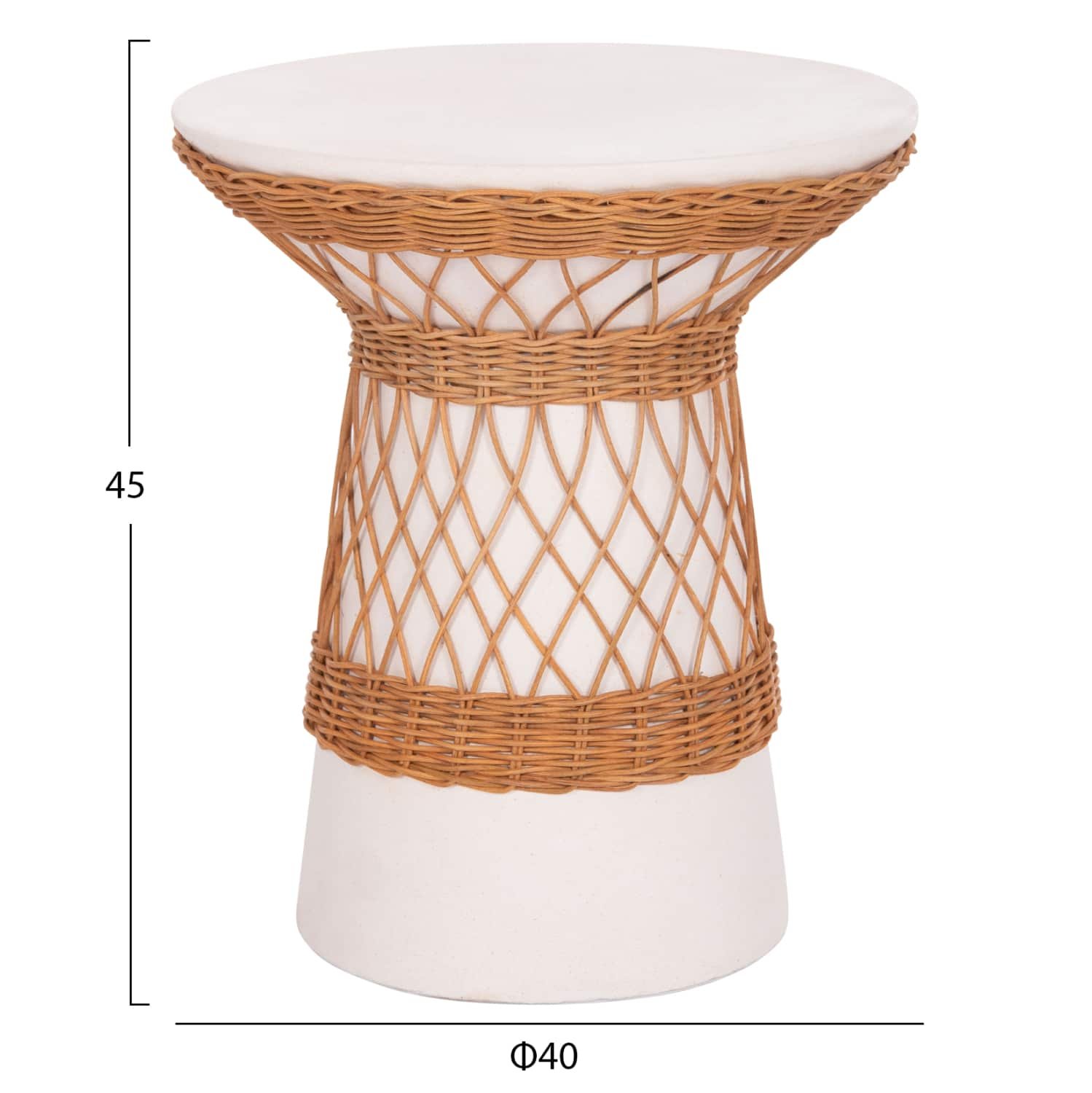 ΒΟΗΘΗΤΙΚΟ ΤΡΑΠΕΖΙ ΣΤΡΟΓΓΥΛΟ DELIA HM18167.02 FIBER CEMENT ΛΕΥΚΟ & RATTAN Φ40×45Υεκ