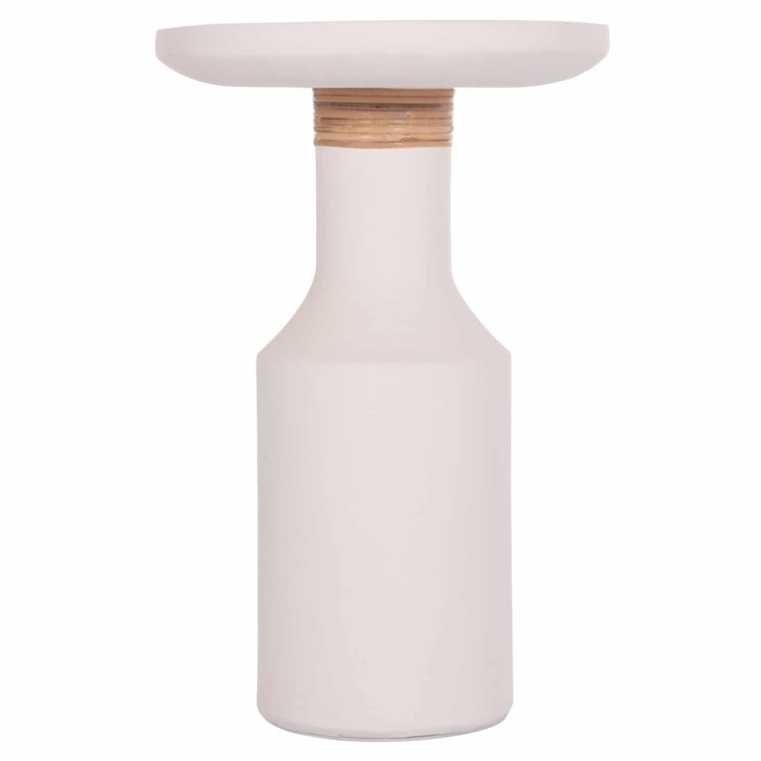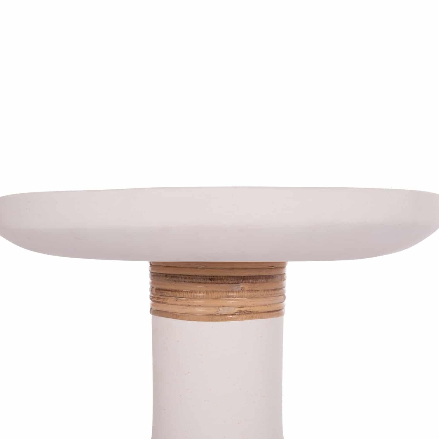 Το βοηθητικό τραπέζι σαλονιού TRED(Τ) είναι ψηλό και στρογγυλό με minimal διακόσμηση/επένδυση στον μακρύ «λαιμό» από φυσικό Rattan. Είναι κατασκευασμένο εξολοκλήρου από Fiber Cement σε ΛΕΥΚΟ χρώμα και αποτελεί ιδανικό συμπλήρωμα τόσο για το σπίτι, όσο και για επαγγελματικούς χώρους, όπως ξενοδοχεία, AirBnB, κτλ.