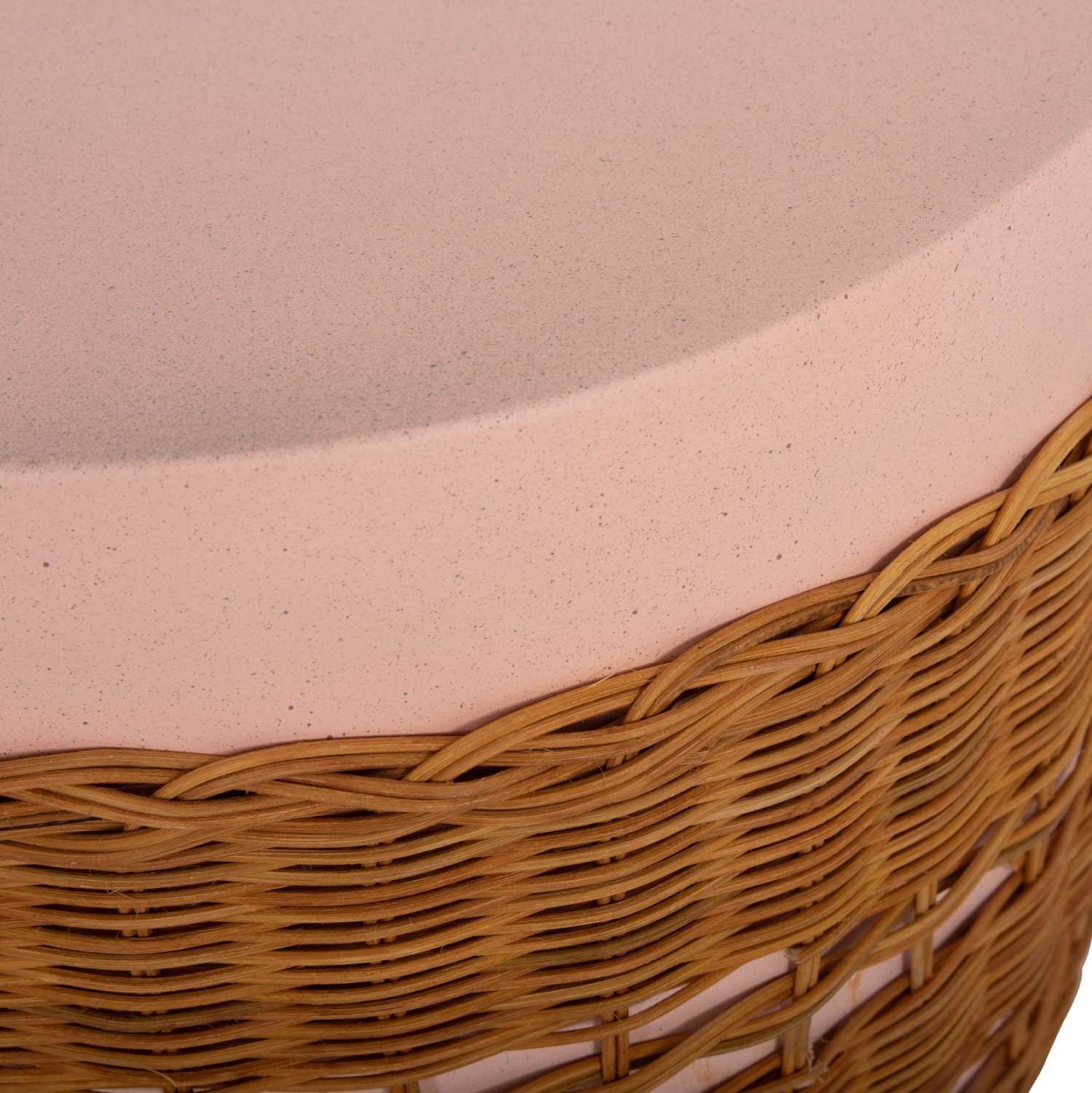 Το βοηθητικό τραπέζι σαλονιού VILHENA είναι στρογγυλό με όμορφη διακόσμηση από φυσικό Rattan. Είναι κατασκευασμένο εξολοκλήρου από Fiber Cement σε ΡΟΖ χρώμα και αποτελεί ιδανικό συμπλήρωμα τόσο για το σπίτι, όσο και για επαγγελματικούς χώρους, όπως ξενοδοχεία, AirBnB, κτλ.