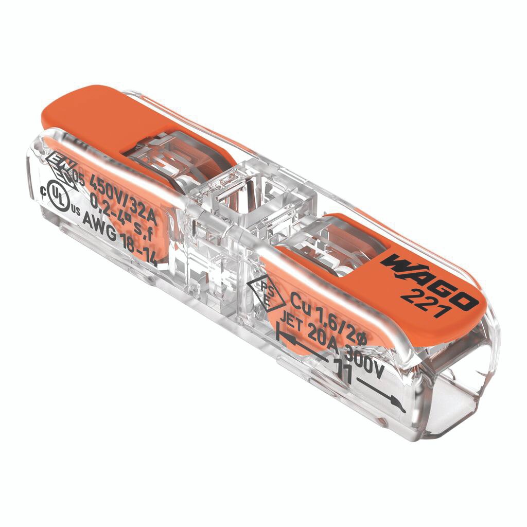 WAGO 221 CONNECTOR, 2 CONDUCTORS 0,02-4 MM2